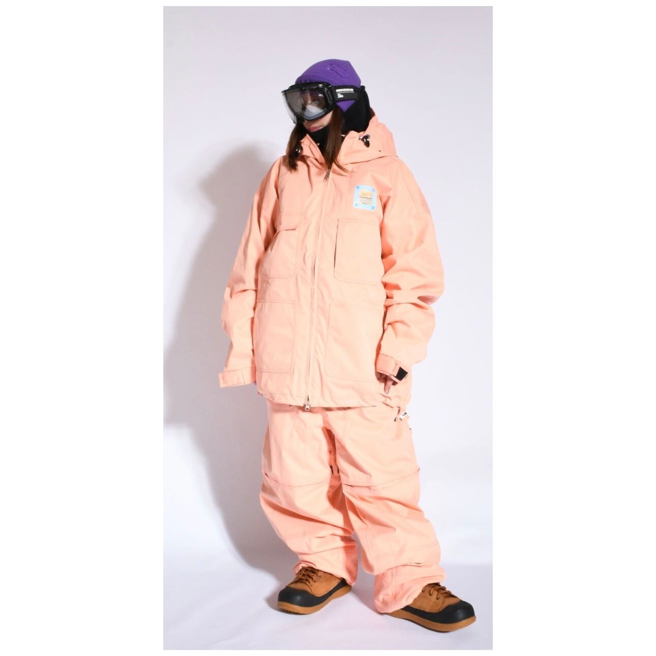 弊社独自のPANTSとファスナーでつなげて腰から雪の侵入を防ぐバリアーシステムあり。(パンツにも同様のバリアーがあり、ファスナーでつなげることで転倒時など雪の侵入を軽減させます。)