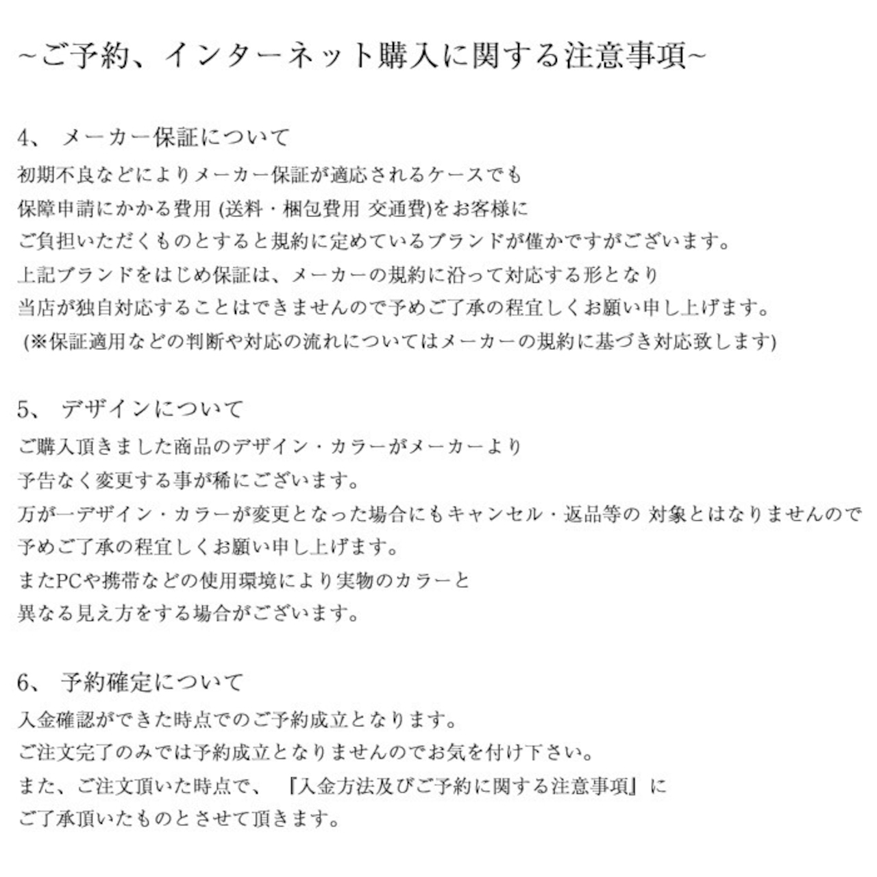 ◇ 对于通过银行转账付款的客户,即使在BASE上显示有库存,也可能已经在实体店完成销售。因此,在收到店铺的库存确认邮件之前,请不要进行付款。
