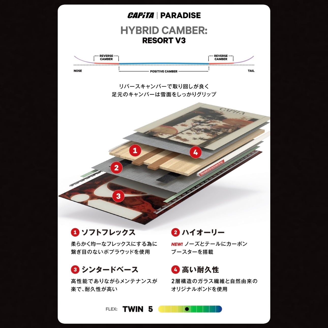 CAPITA 『 PARADISE 』 25-26 キャピタ パラダイス The Mothership マザーシップ 自社工場 オールマウンテン フリースタイル ハイブリッドキャンバー スノーボード