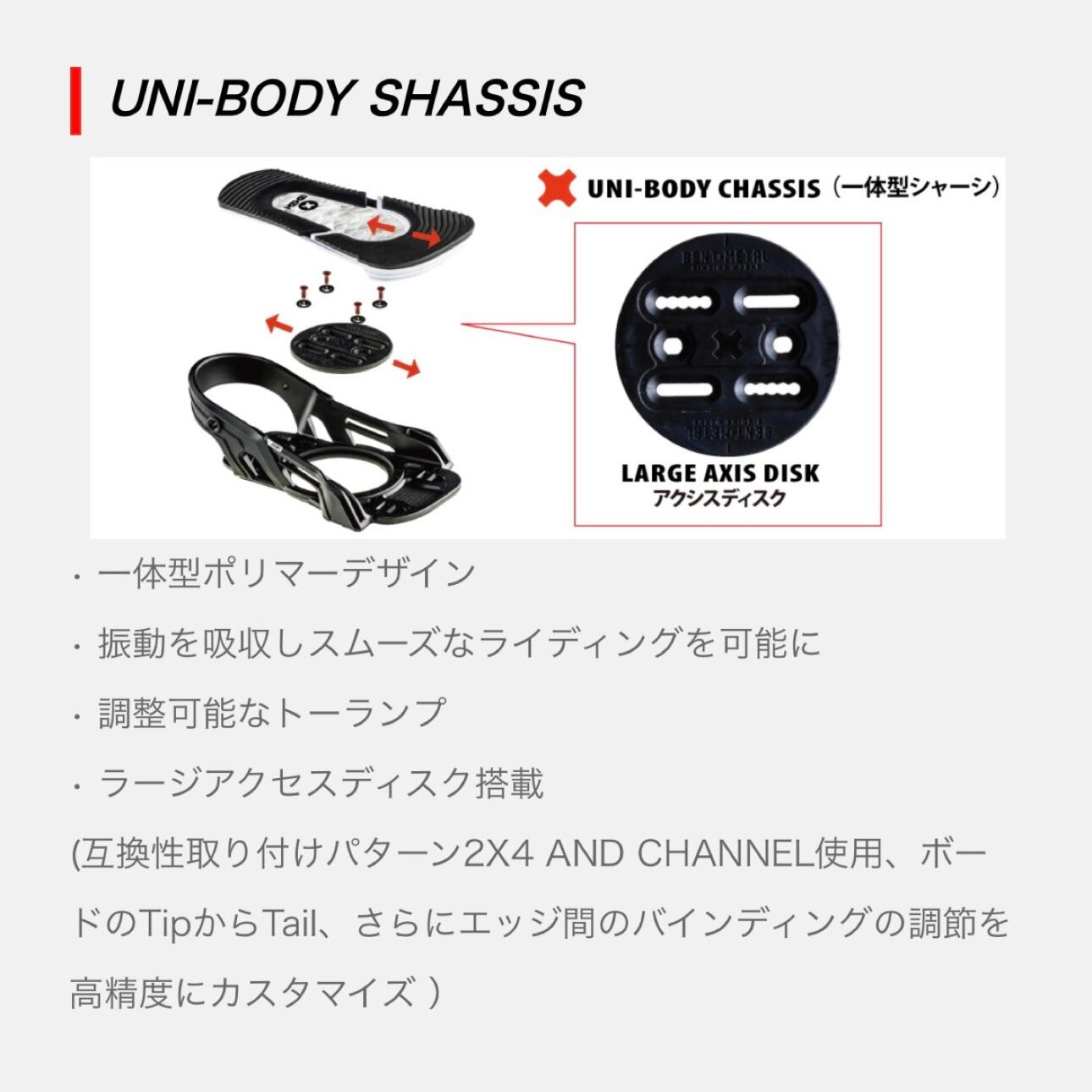 ・フットベッドにはグラスファイバー製パネルを採用し、スノーボードと同じようなフレックスパターンを創り出し、バインディングの反応をカスタマイズすることができます。