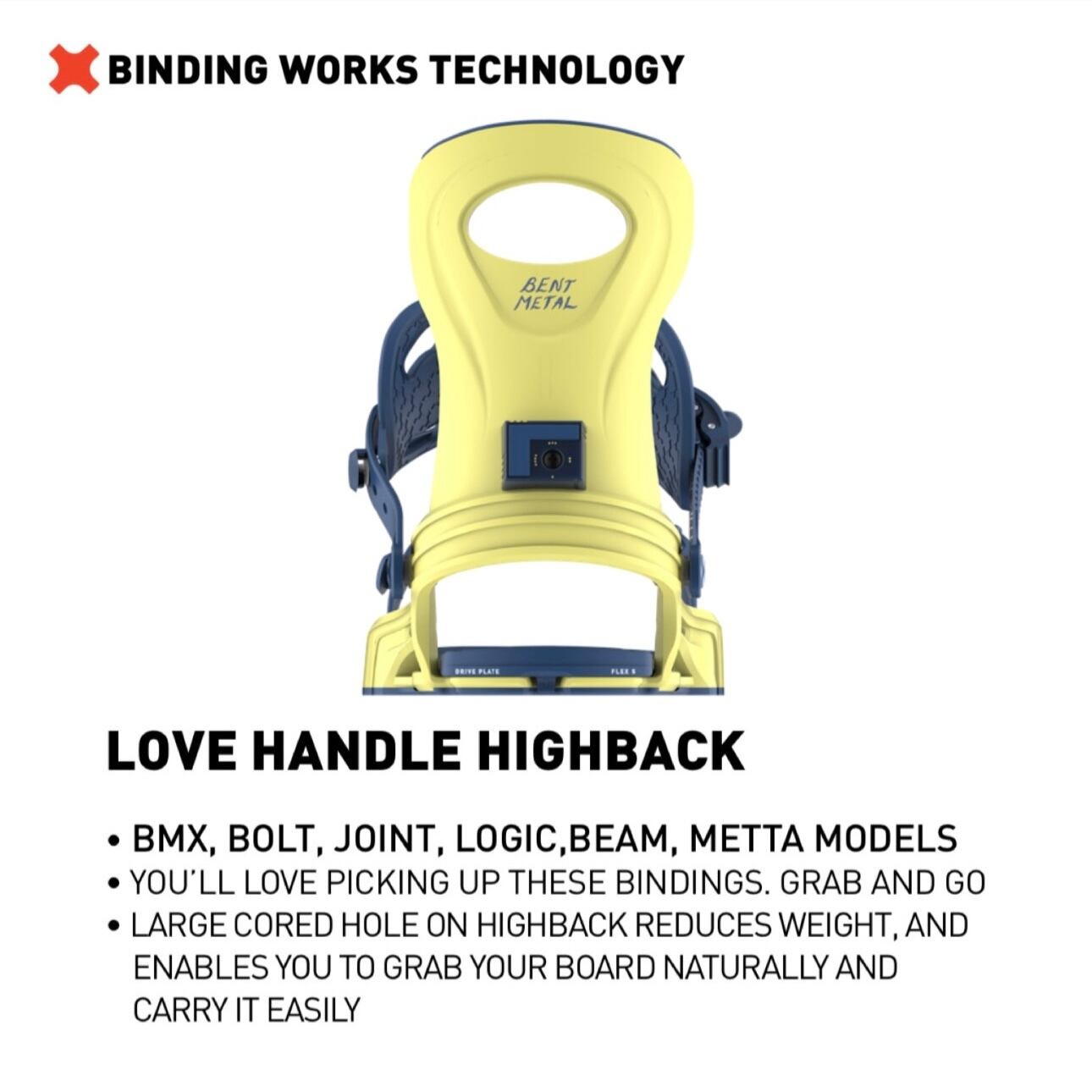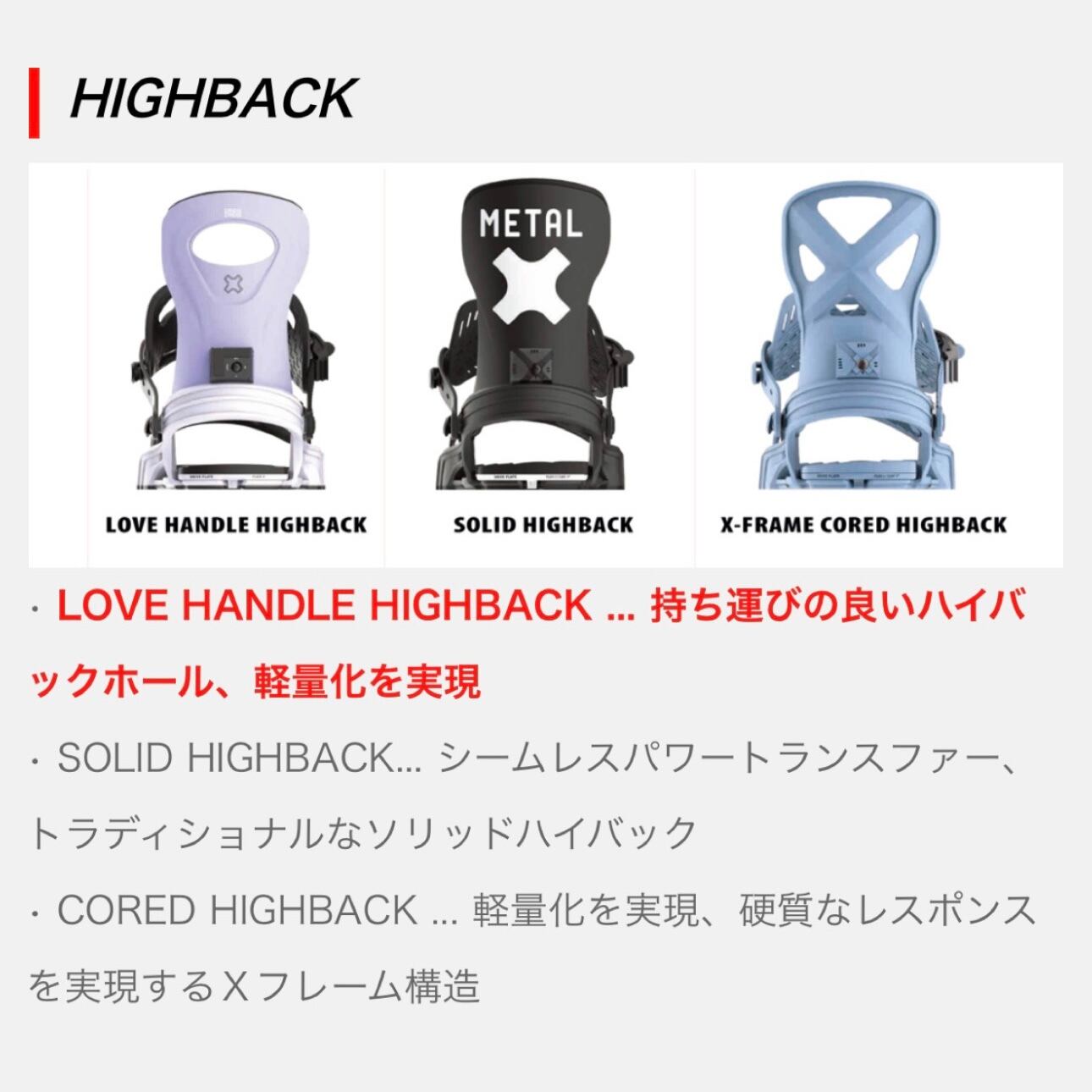 METTAはミディアムフレックスのオールテレイン用バインディングで、トーションの良く効くラブハンドルハイバック、ミディアムフレックスなドライブプレート、力の伝達に優れたパワーフレックスアンクルストラップを搭載し、乗り手やスタイルを選ばず、フレックス・コントロールのアドバンテージを発揮します。