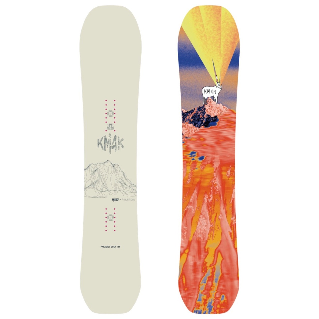 今期より真のディレクショナルボードにリニューアルしたPARADISE STICK 6はバランスの取れたSキャンバーでパウダーを掻き分け、ブーストされたカーボンが高い反応性でライダーの動きをサポート。HAKUBAの山奥で滑り込んできたKM4K SNOWBOARDSの真骨頂をお楽しみください。今期はグラフィックアートのNOZOMIとKM4KライダーのHOLYが担当・世界初(?)のインサートホールだけしぐネーチャー、HOLY HOLEがあなたをHOLY WORLDに導きます。HOLY HOLEはあります。
