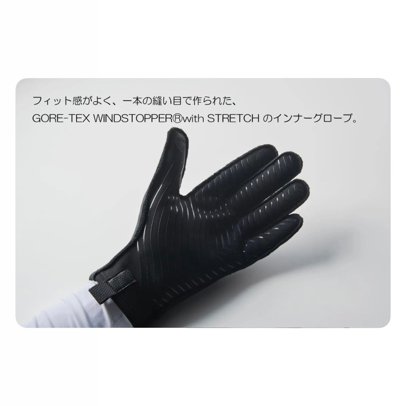 1. ウェアの袖口にグローブの生地をかぶせることで、風の侵入をなくし、ウェア内部の熱も逃がさいので、 ウェアの保温性が格段にアップ。