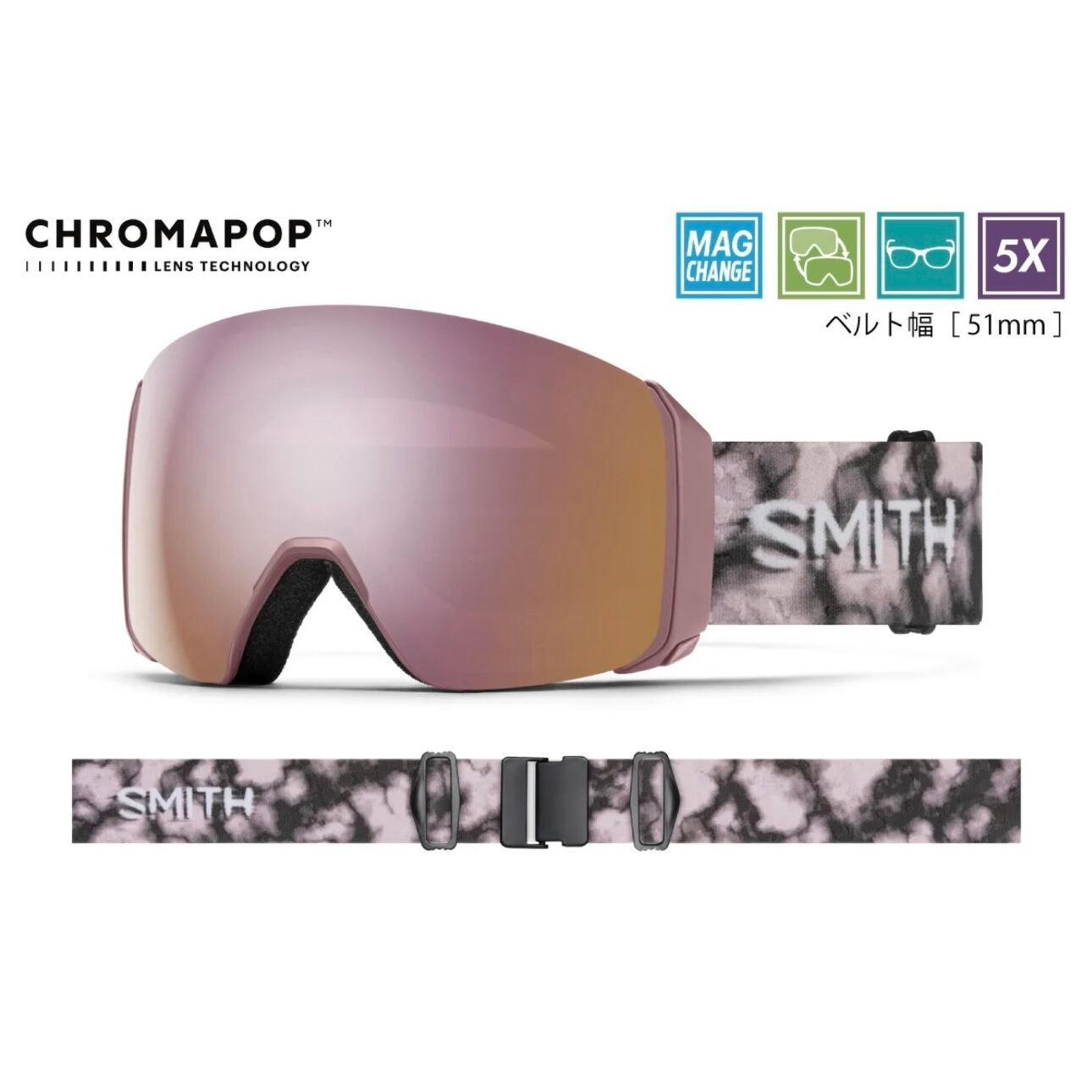 + 5X アンチフォグ・インナーレンズ(水蒸気をインナーレンズ内部にとじ込め曇りの原因を抑える。通常のSMITHフォグX・インナーレンズの5倍の曇り防止機能がある)
