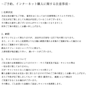 〜 Important Notes Regarding Reservations and Online Purchases 〜