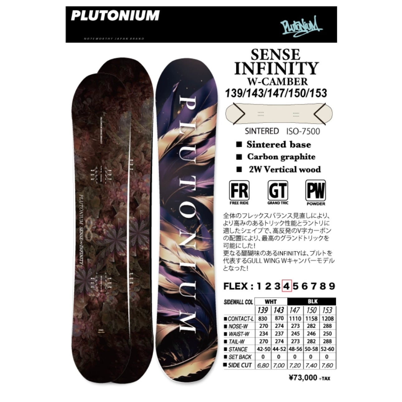 25/26 PLUTONIUM 『 SENSE INFINITY 』 正規販売店 プルトニウム センスインフィニティ? オールラウンド フリースタイル グラトリ ダブルキャンバー スノーボード