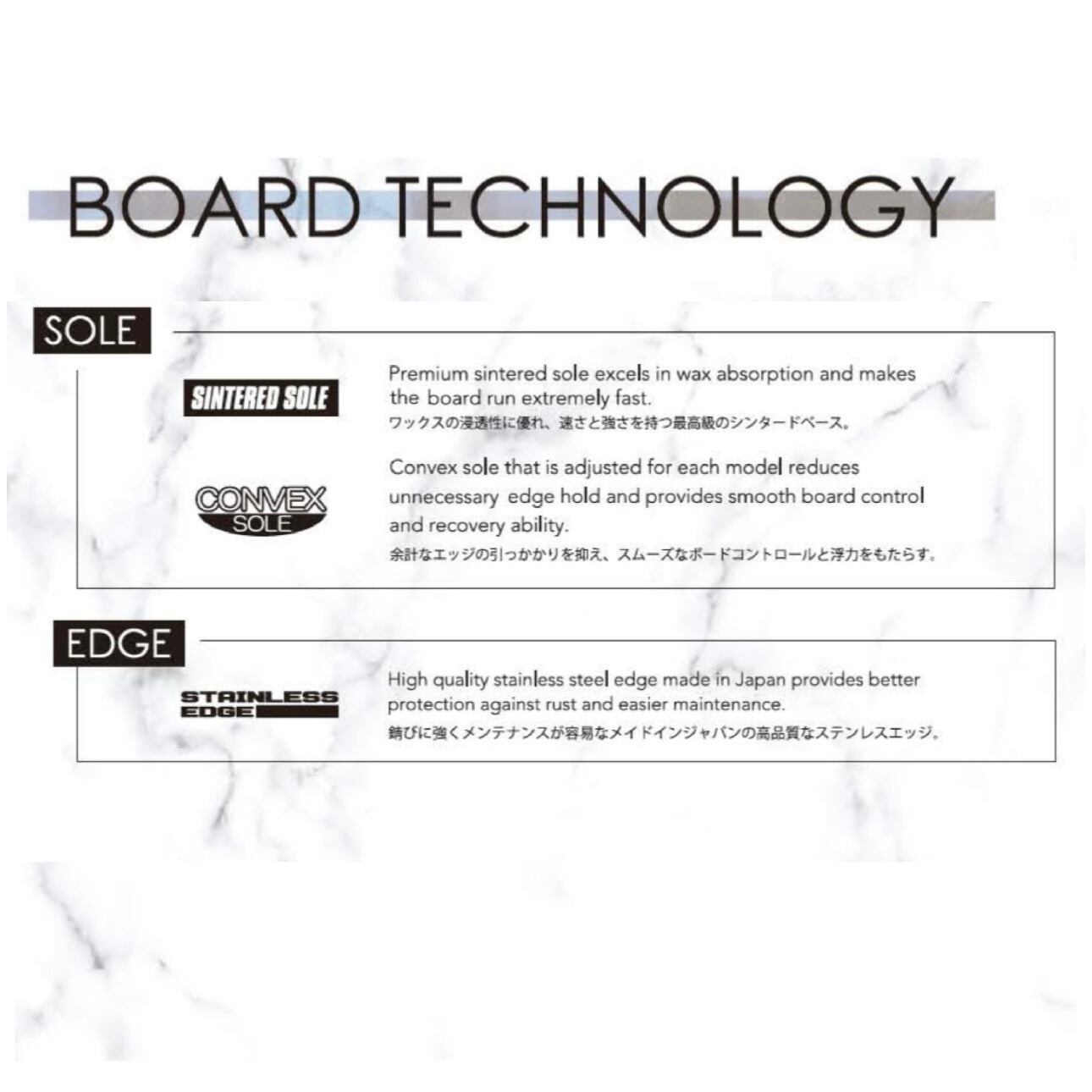 CONVEX SOLE:余計なエッジの引っかかりを抑え、スムーズなボードコントロールと浮力をもたらす。