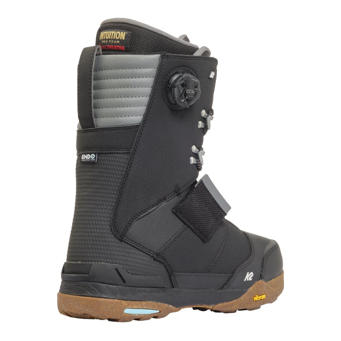 ・ハーシュメロウ™ pro/plus フットベッド:Pro、Plus、Baseの3種類のフットベッドに、K2独自のハーシュメロウ™振動減衰機能を搭載。その結果、一日中バックカン トリーに出かけたり、ゲレンデ周辺でハイクやライディングをする際にも、優れた振動吸収性と快適性を発揮する。