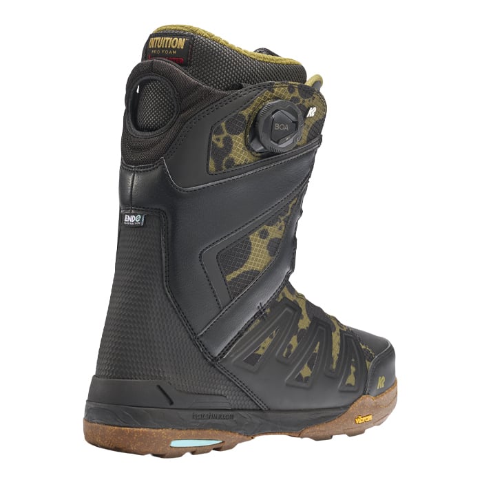 ・ENDO™ 2.0 構造:K2スノーボーディング独自のEndoTM構造は、余分な素材を追加することなく(余分な素材=余分な重量)、スノーボードブーツのフレックス、レスポンス、反発を変えることができる。インジェクション・ヒールカウンターで余分な素材 を置き換えることで、フォーミュラを変更するのと同じくらい簡単に反発力を追加す ることができ、より安定したフレックスで長持ちするスノーボードブーツを提供することができる。