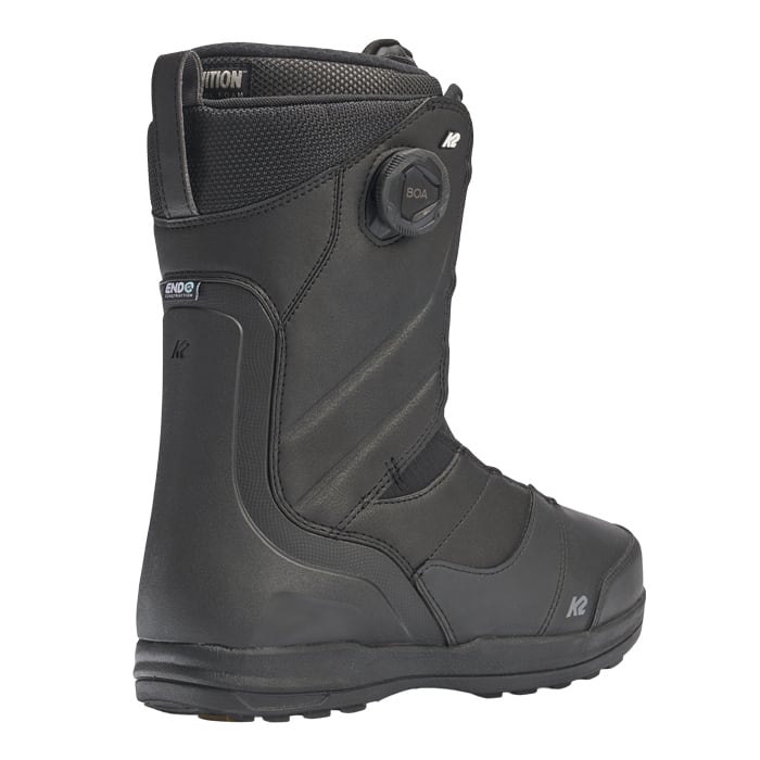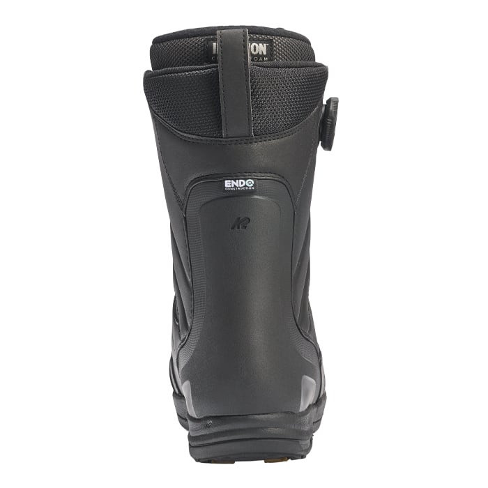 ・ENDO™ 3.0 構造 | K2スノーボーディング独自のEndoTM構造は、余分な素材を追加することなく(余分な素材=余分な重量)、スノーボードブーツのフレックス、レスポンス、反発を変えることができる。インジェクション・ヒールカウンターで余分な素材 を置き換えることで、フォーミュラを変更するのと同じくらい簡単に反発力を追加す ることができ、より安定したフレックスで長持ちするスノーボードブーツを提供することができる。
