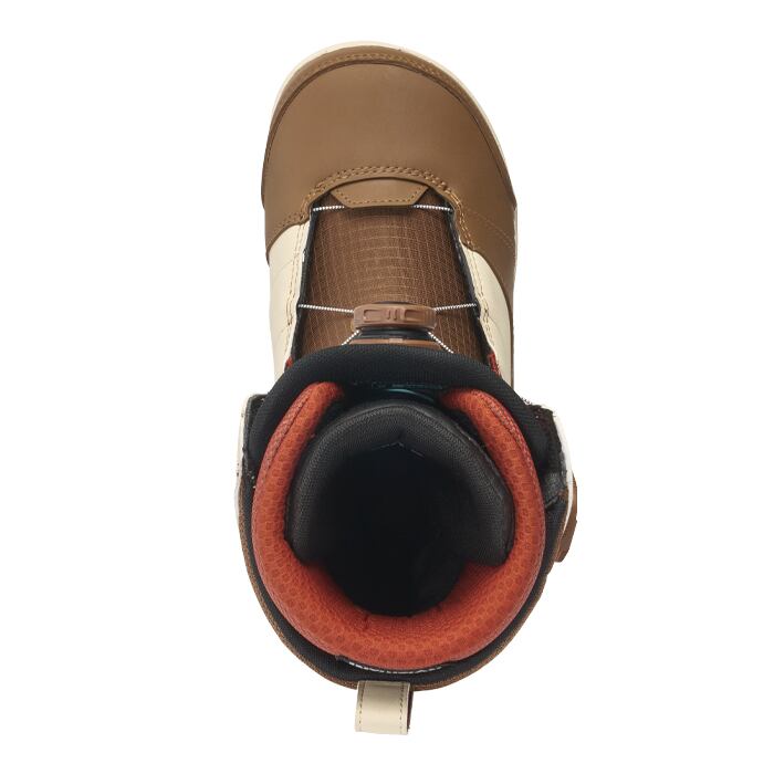 ・ボア®フィットシステムとコイラー・ボア®フィットシステム:ワイヤーとリールをベースとしたレーシング・システム。低摩擦ガイドにより、均一な締め付けを実現。 BOA®コイラーは、シューレースのたるみを自動的に収納し、ブーツをすっきりとした状態に保つ。