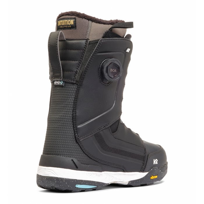 ・ENDO™ 2.0 構造:K2スノーボーディング独自のEndoTM構造は、余分な素材を追加することなく(余分な素材=余分な重量)、スノーボードブーツのフレックス、レスポンス、反発を変えることができる。インジェクション・ヒールカウンターで余分な素材 を置き換えることで、フォーミュラを変更するのと同じくらい簡単に反発力を追加す ることができ、より安定したフレックスで長持ちするスノーボードブーツを提供することができる。