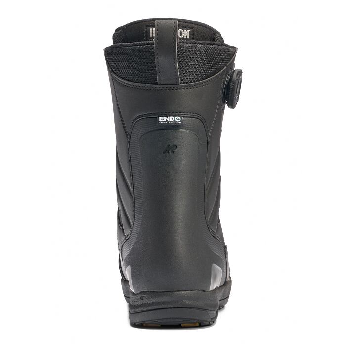 ・ENDO™ 2.0 構造:K2スノーボーディング独自のEndoTM構造は、余分な素材を追加することなく(余分な素材=余分な重量)、スノーボードブーツのフレックス、レスポンス、反発を変えることができる。インジェクション・ヒールカウンターで余分な素材 を置き換えることで、フォーミュラを変更するのと同じくらい簡単に反発力を追加す ることができ、より安定したフレックスで長持ちするスノーボードブーツを提供することができる。