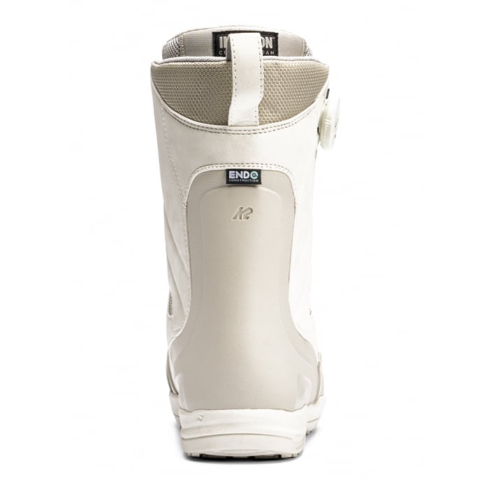 ・ENDO™ 2.0 構造:K2スノーボーディング独自のEndoTM構造は、余分な素材を追加することなく(余分な素材=余分な重量)、スノーボードブーツのフレックス、レスポンス、反発を変えることができる。インジェクション・ヒールカウンターで余分な素材 を置き換えることで、フォーミュラを変更するのと同じくらい簡単に反発力を追加す ることができ、より安定したフレックスで長持ちするスノーボードブーツを提供することができる。