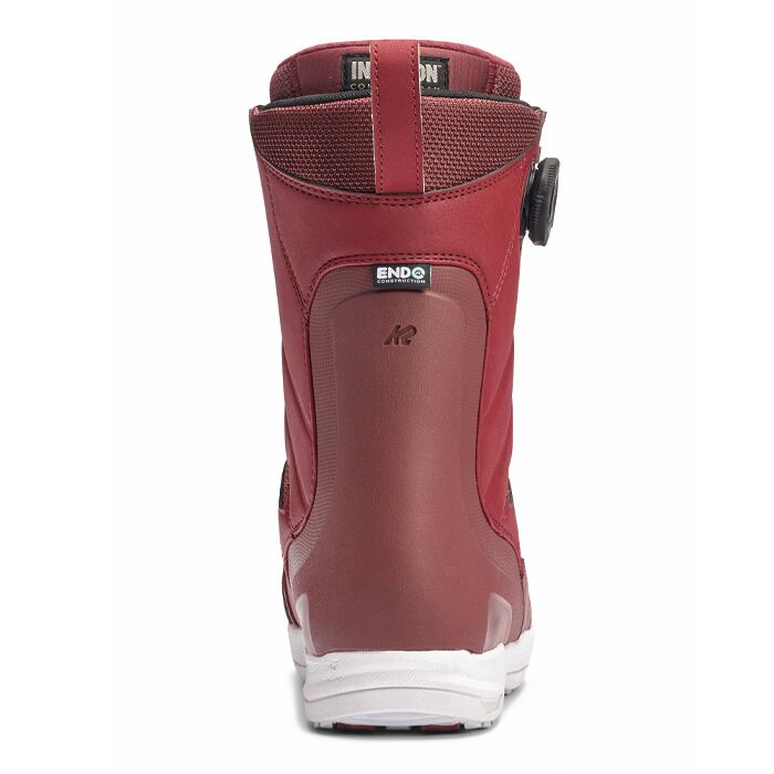 ・ENDO™ 2.0 構造:K2スノーボーディング独自のEndoTM構造は、余分な素材を追加することなく(余分な素材=余分な重量)、スノーボードブーツのフレックス、レスポンス、反発を変えることができる。インジェクション・ヒールカウンターで余分な素材 を置き換えることで、フォーミュラを変更するのと同じくらい簡単に反発力を追加す ることができ、より安定したフレックスで長持ちするスノーボードブーツを提供することができる。