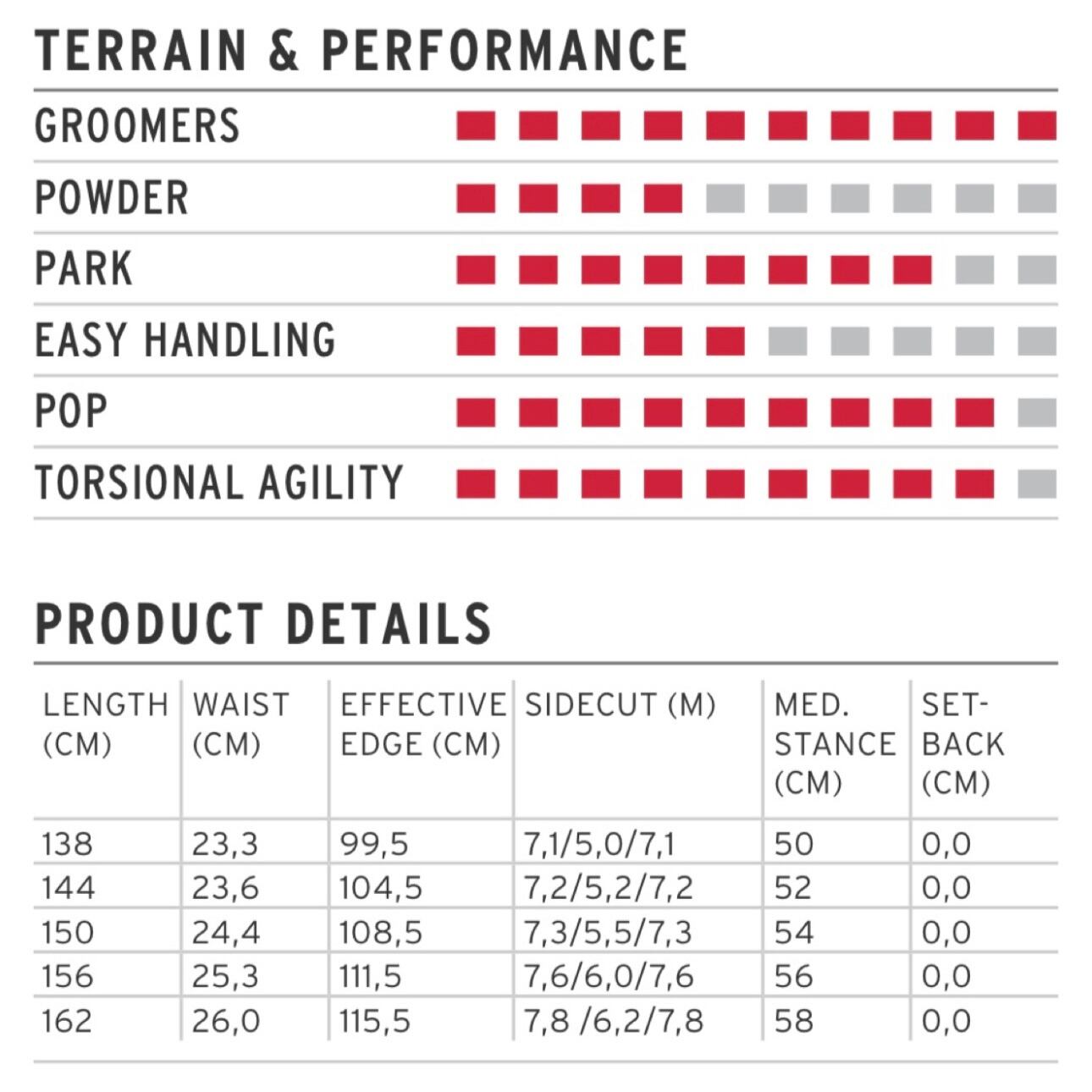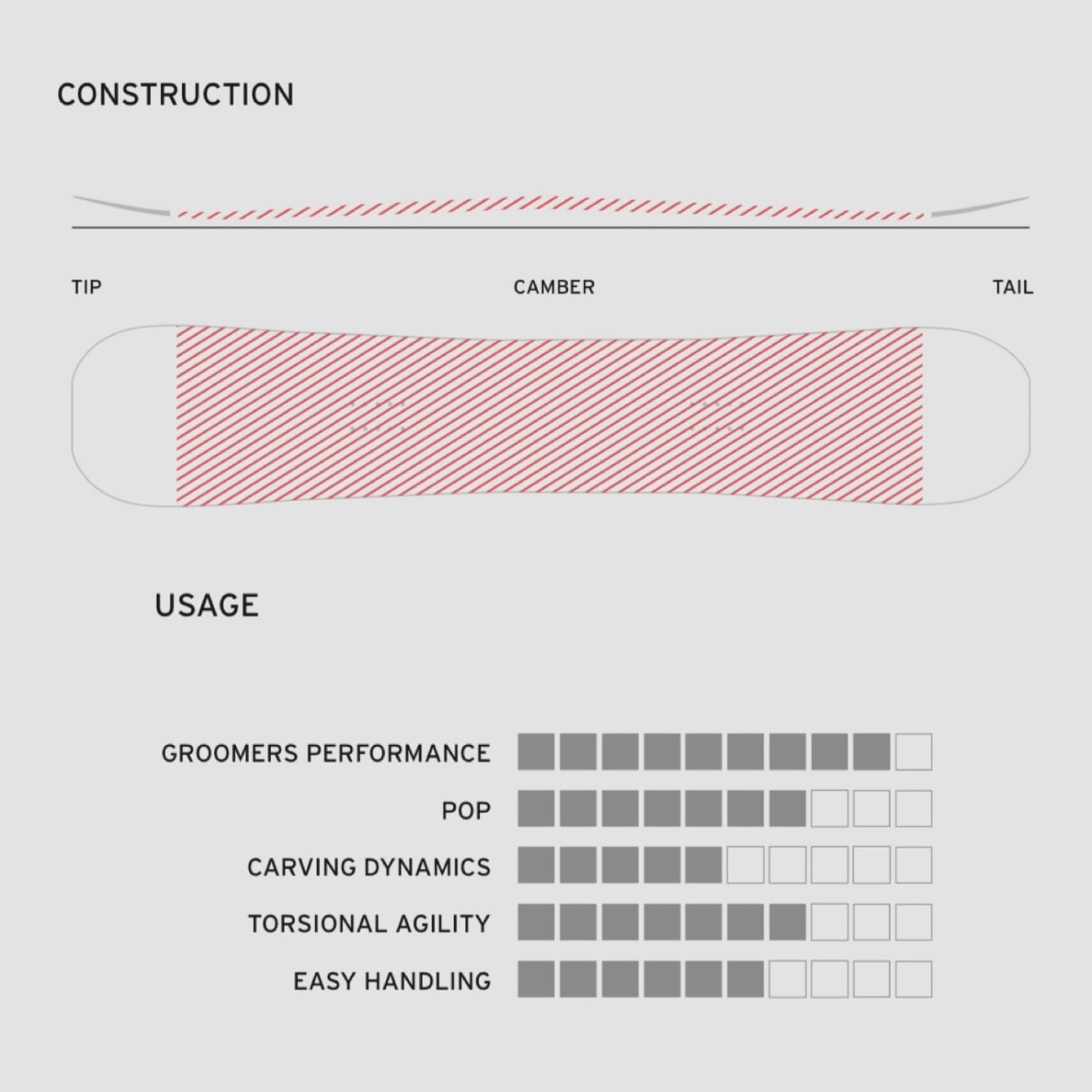 ・シンプルなキャンバー形状は経験豊かで技術の高いライダーたちが選べるようコンセプトされている。確かな反応と反発力、高いコントロール精度とエッジパフォーマンスを備えている。