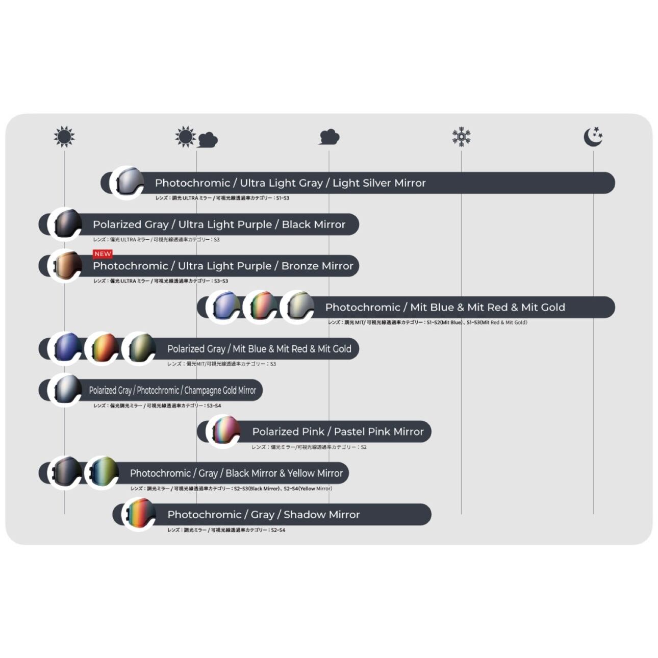 ■ PHOTOCHROMIC(調光):レンズの色が紫外線によって色が変わる機能。