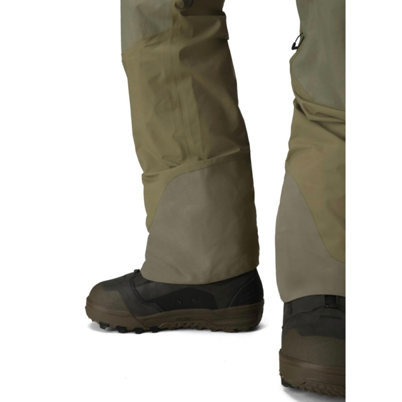 バックカントリーでライディングをするエクストリームなスノーアンバサダー達はモービルやスノーシューを使い雪山を動き回ります。 特にパンツは生地と生地の摩擦や道具とのコンタクトが多く、耐久力と防風・耐水・透湿性を求められ、同時に歩きやすさや履きやすさなどのフィットも重要なポイントとなります。