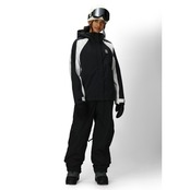 シンプルなパイピングデザインはどこか懐かしさを感じさせるようなレトロなデザインで、フードのドローコードを絞ることで、悪天候でも顔からの雪の侵入を抑えることができます。