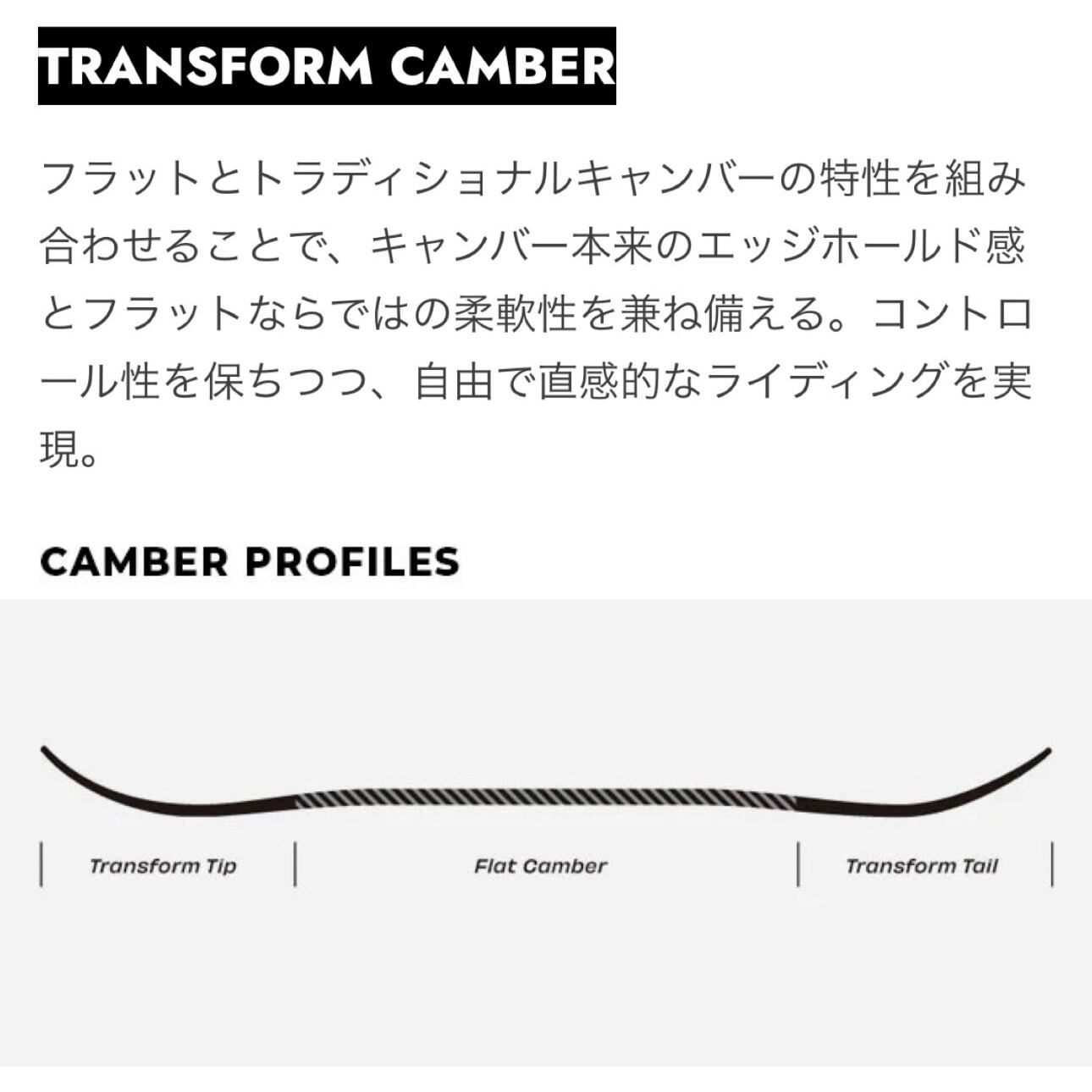 Transform Camber:安定性と操作性を完璧にブレンドし、滑るたびに上達する感覚を与えてくれる。