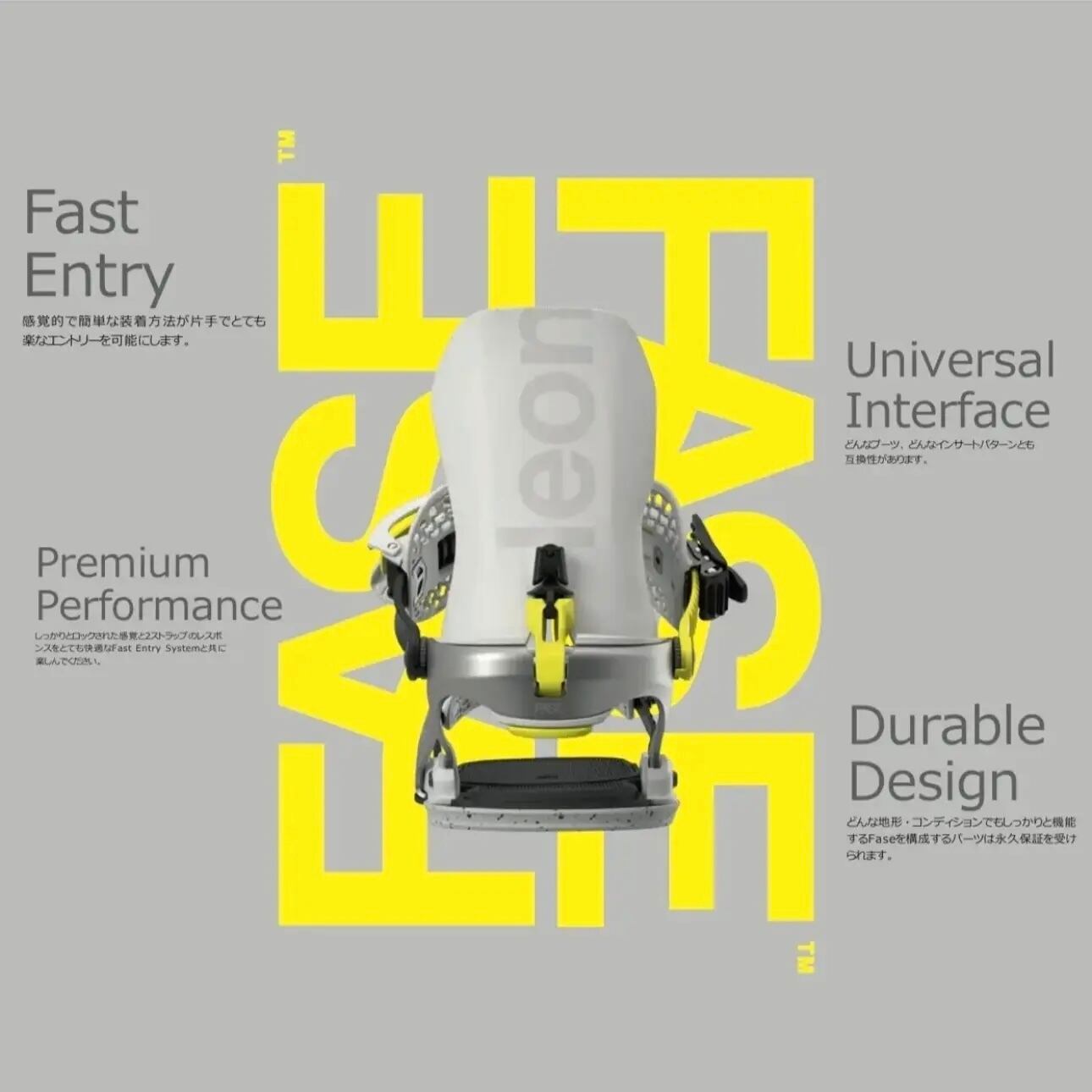 汎用性に優れたこのオールマウンテンバインディングは全てのターンに正確性と快適性を求めるライダーたちのために作られています。革新的なFASE Fast Entry Systemが搭載されているので、感覚的で簡単な脱着が可能なのでリフトからの滑り出しを素早く行うことが可能です。軽量なアルミフレームは左右のフレックス機能を提供しながら、しっかりとしたエッジトゥエッジを可能にします。3D Aux Tech Cradle Fast Strapsはブーツをしっかりと包み込むことで高いホールド感を生み、高レスポンスバインディングに仕上げます。