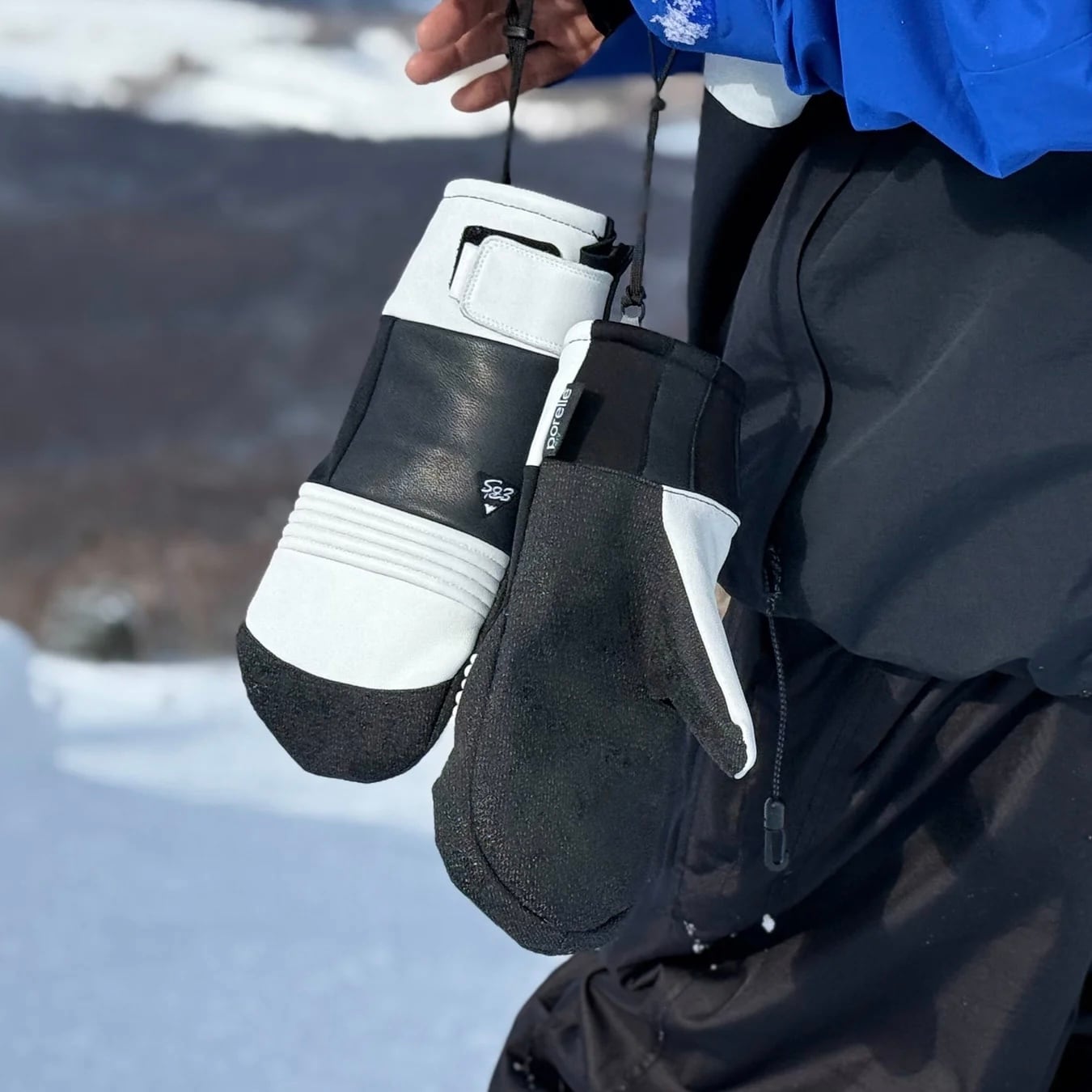 ・本革=摩擦や型崩れに強くやわらかい手触りが特徴のゴート革(山羊革)を使用しています。染色加工の際に防腐、防水材を混ぜており雪山でも使えば使うほどやわらかくしなやかになり手に馴染んでくれ革を育てるのもレザーグローブの醍醐味です。