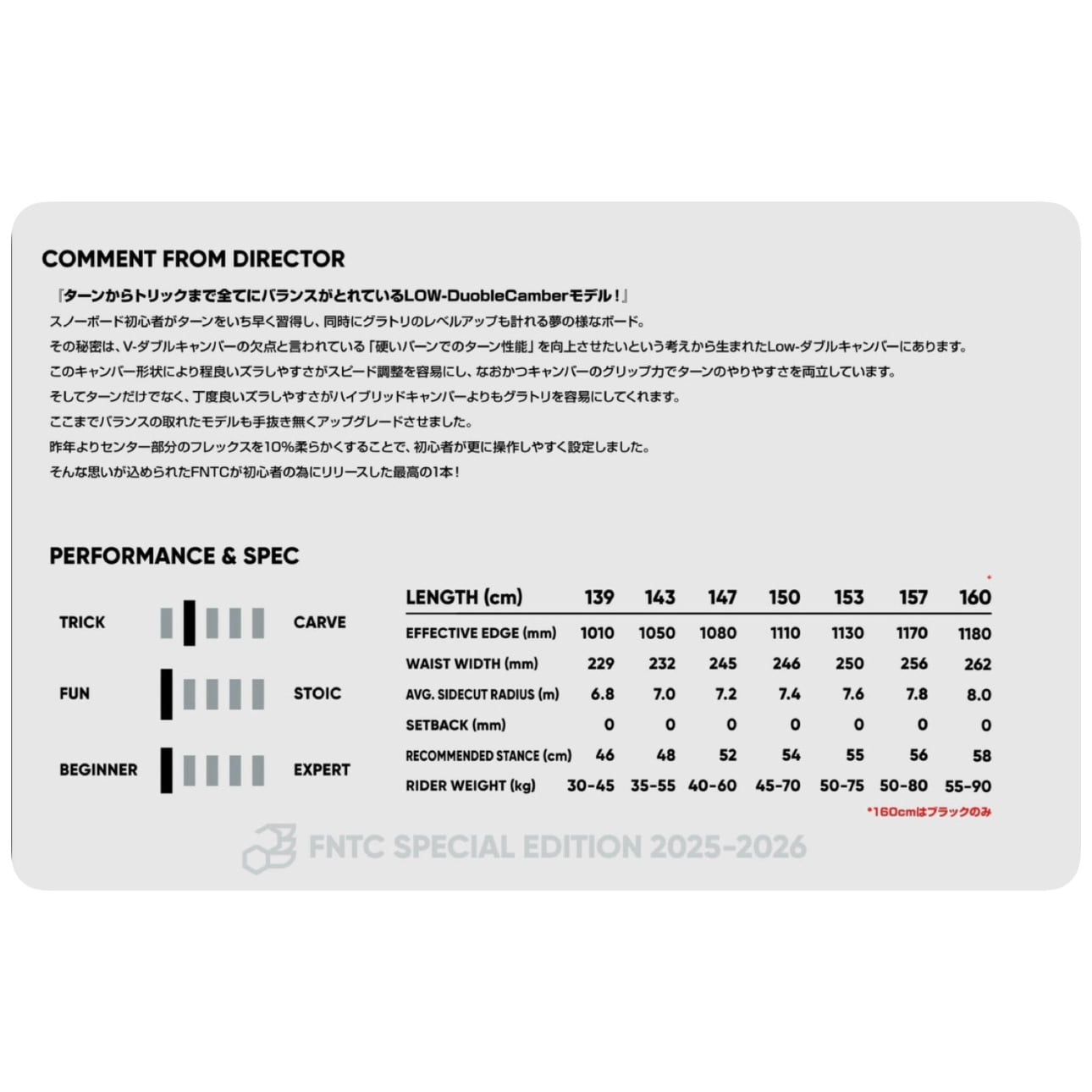 25/26 FNTC 『 TNT L 』 正規販売店 エフエヌティーシー ティーエヌティーエル ダブルキャンバー フリースタイル グランドトリック スノーボード 板