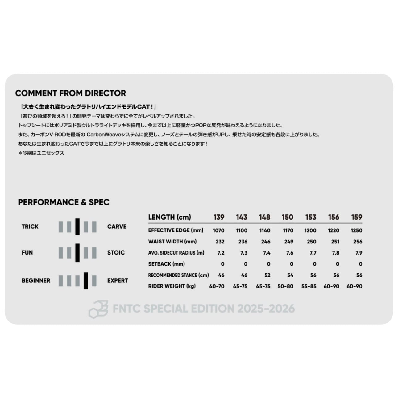 25/26 FNTC 『 CAT 』 正規販売店 エフエヌティーシー シーエーティー ダブルキャンバー フリースタイル グランドトリック スノーボード 板