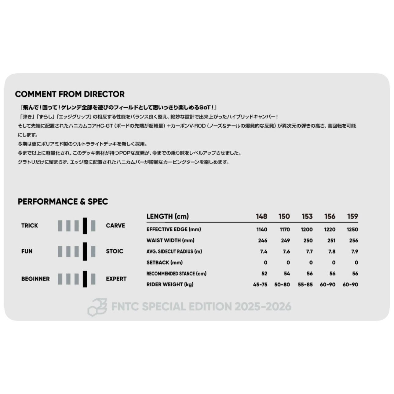 25/26 FNTC 『 SoT 』 正規販売店 エフエヌティーシー エスオーティー ハイブリッドキャンバー フリースタイル グランドトリック スノーボード 板