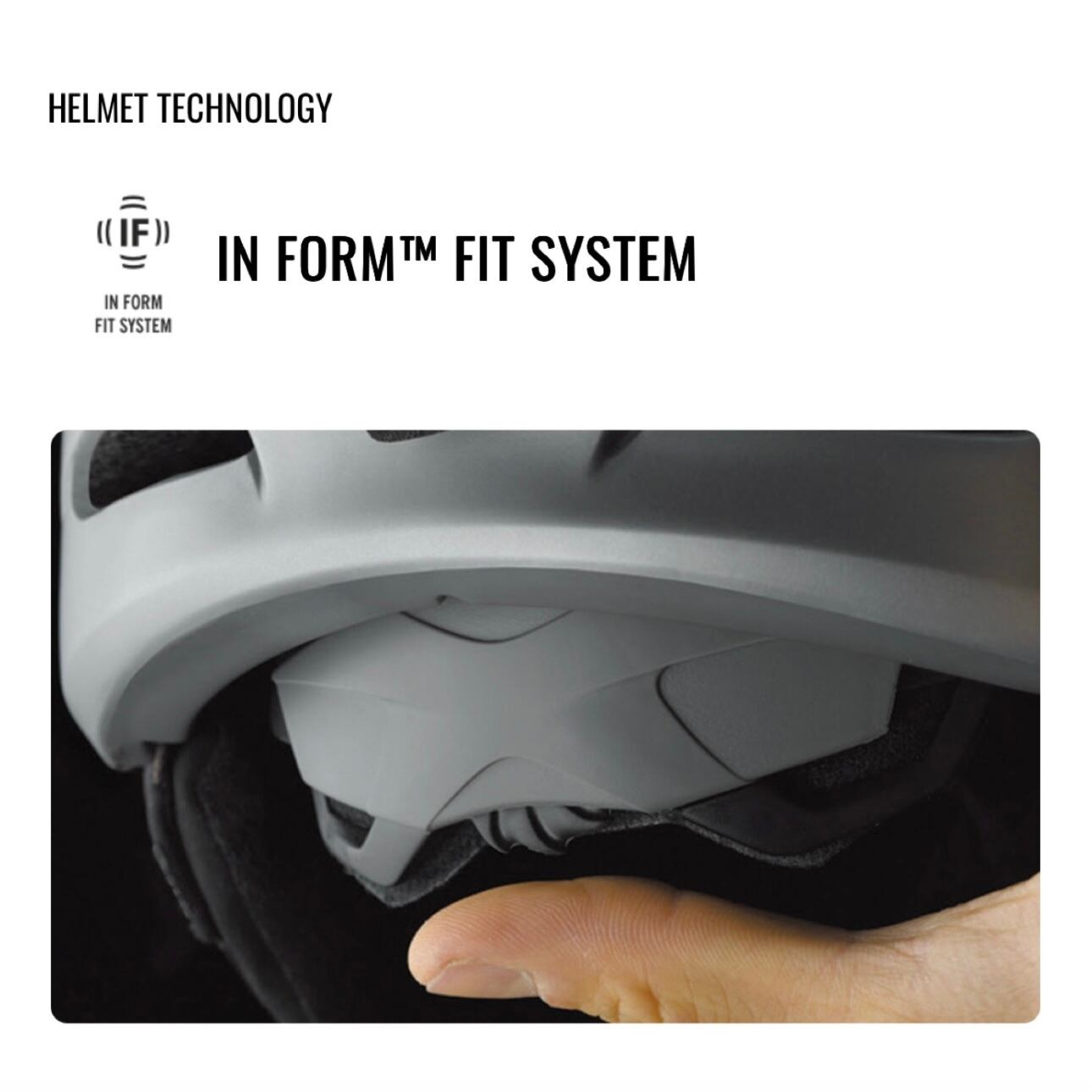 インフォームフィットシステムはダイヤルを調整することで、グローブをしたまま数秒で簡単に頭の形状にカスタムフィットさせることができます。簡単な操作のエルゴダイアルによって6センチの幅で調整することができ、ヘルメットの安定性を向上させます。さらに縦方向の調整機能により異なるゴーグルや頭の形状に応じてカスタムフィットさせることが可能で、ゴーグルとヘルメットの隙間調整もできます。