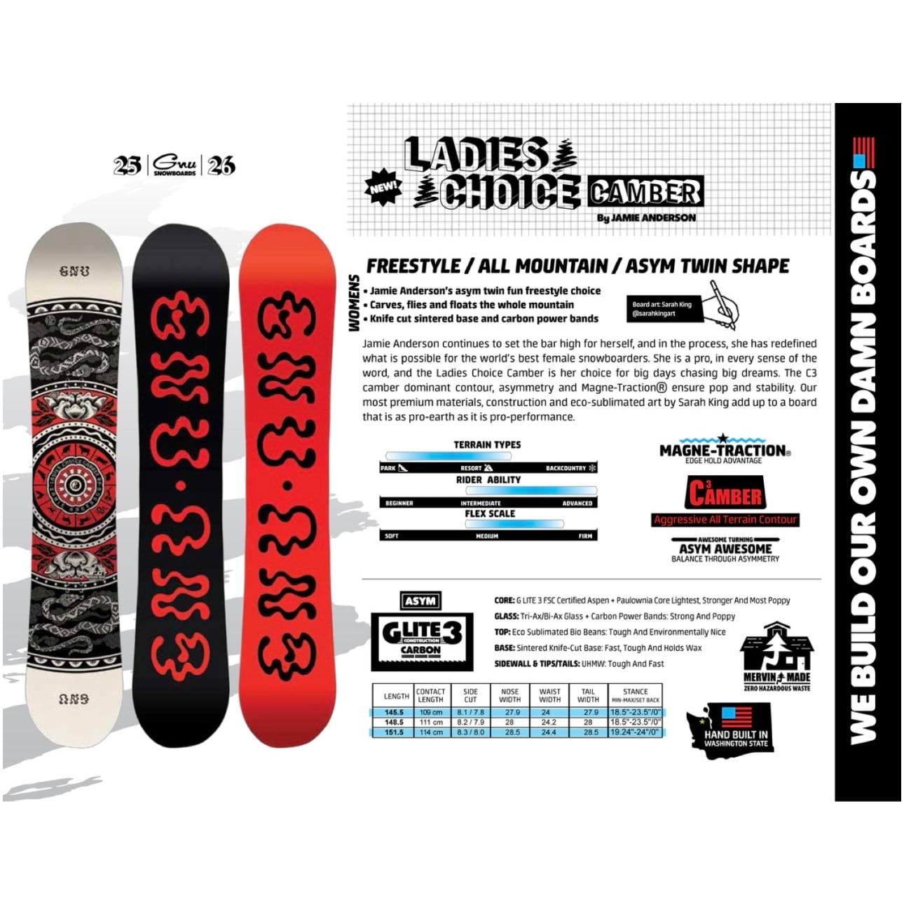 25/26 GNU 『 LADIES CHOICE CAMBER 』 正規販売店 グヌー レディースチョイス キャンバー フリースタイル オールマウンテン アシムツインシェイプ スノーボード 板