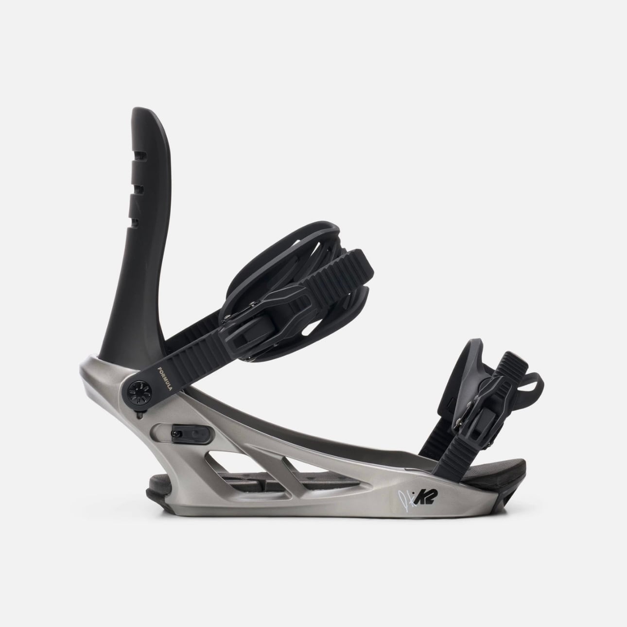 パッドレスのベンダー™アンクルストラップは、高いリスク状況でも最高レベルの快適性と安定性を提供し、パーフェクトフィット™ 2.0トゥストラップは、あらゆるスノーボードブーツのトゥプロファイルに適合するようにヒンジ式設計されており、快適性と迅速なレスポンスを実現します。フォーミュラのパワーランプは、ブーツのアウトソールの底面と均一に合わせられるように調整可能で、シャーシに直接組み込まれた3度のカントと組み合わさり、大きな着地、安定したテイクオフ、あらゆる地形でのバランスの取れたライディングポジションを実現します。