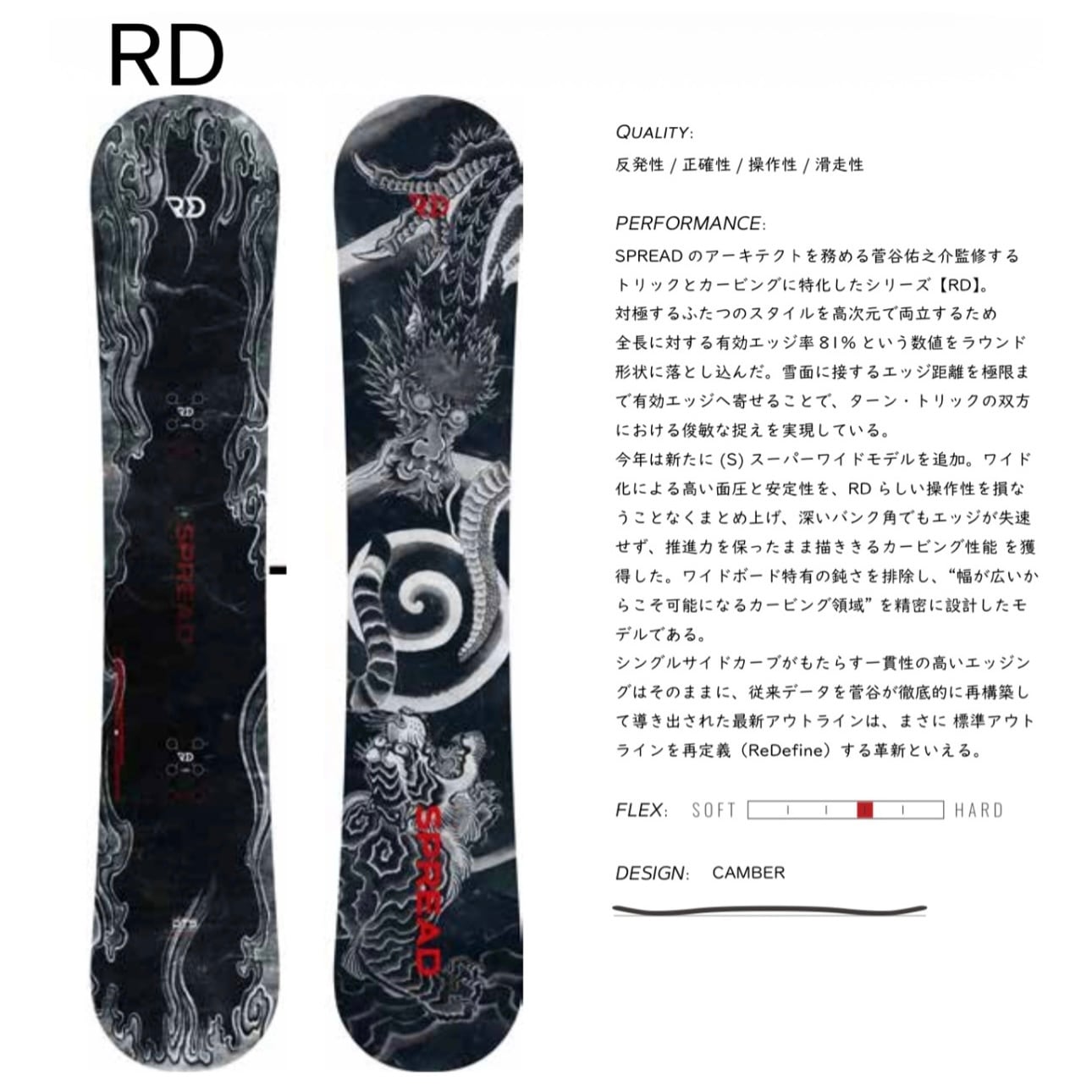 26/27 SPREAD スプレッド 『 RD アールディー 』 菅谷佑之介監修モデル カービング ラントリ 弾き系 スノーボード 予約商品の為入荷は10月以降を予定しております