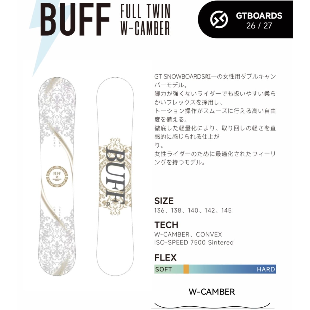 26/27 GT Snowboards 『 BUFF バフ 』 W Camber 梅野航希 こきっすん スノーボード 予約商品の為入荷は10月以降を予定しております