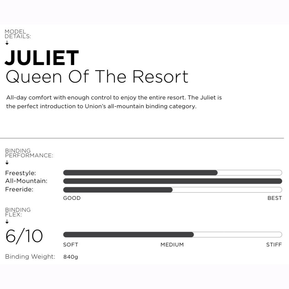 JULIETは、ユニオンのオールマウンテン ビンディングカテゴリーへの完璧な入門書です。