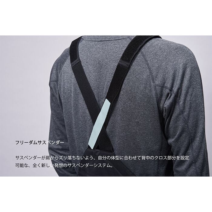 ・肩からサスペンダーがズリ落ちないように、自分の体型に合わせて設定できるフリーダムサスペンダー。