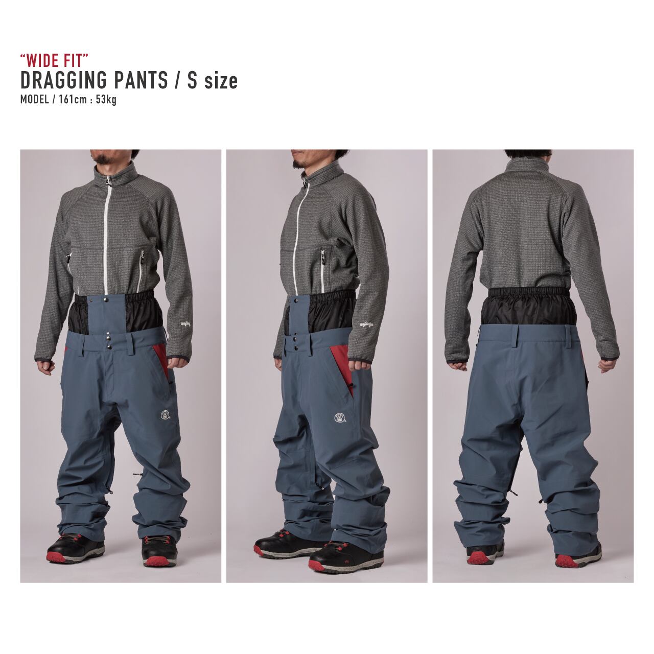 アンファッジスノーウェアで初めて制作するスタンダードパンツが「ドラッギングパンツ」です。