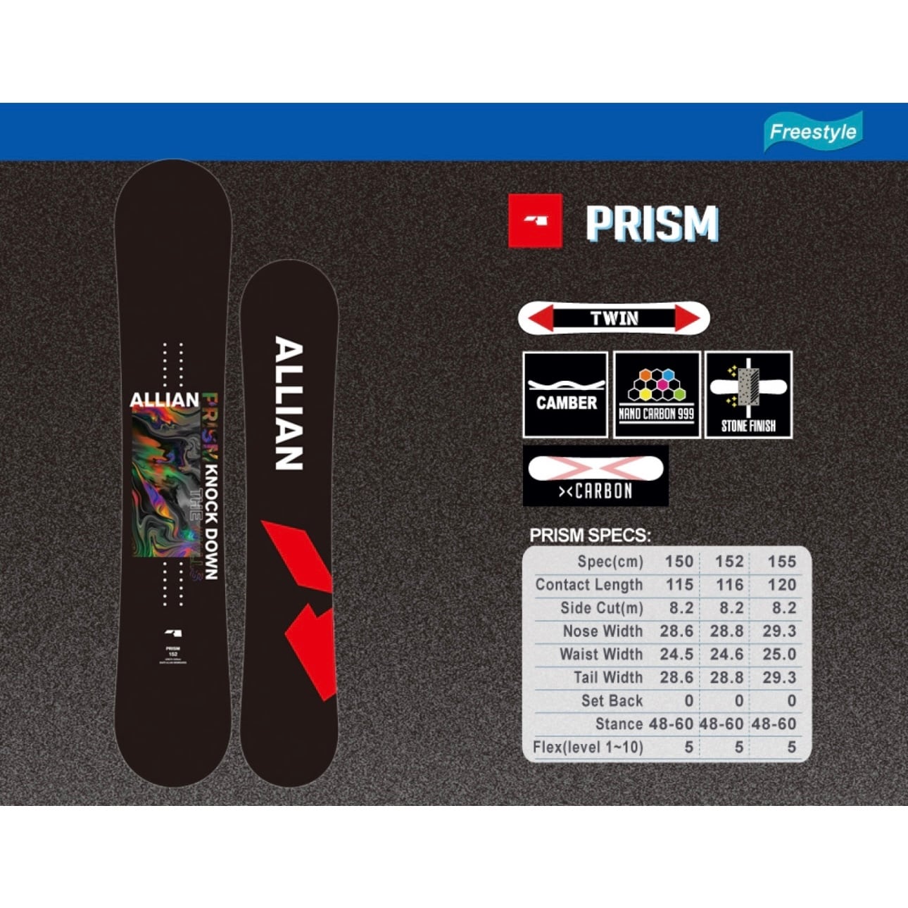 ALLIAN 『 PRISM 』 24-25 / アライアン / プリズム / フリースタイル / フリーライド / キャンバー / ツインチップ / カービング / パーク / 地形 / グラトリ / ラントリ / スノーボード / メンズ / 板