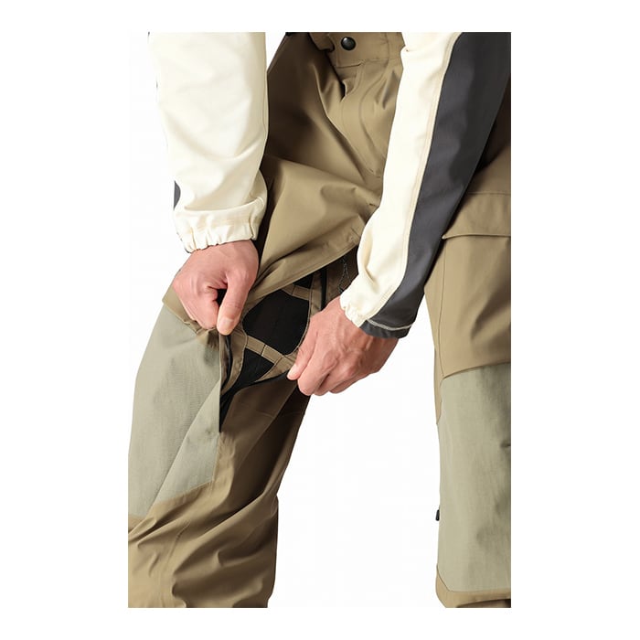 このビブはナイロンベースの2レイヤーストレッチゴアテックスを使用していて、アンバサダー達からの様々なフィードバックをベースに開発されたビブです。コンタクトの多い膝や裾には500デニールの強度のある生地がレイヤードで補強され生地が傷つき切れたりすることを防ぎます。ハイクアップで足を上げて歩く際にも股下の引っかかりが少なく、適度にゆとりのあるフィット感はストレス無く歩く事が出来ます。背中のストレッチパネルは通気性も良く伸縮性も良いです。ポケットも多く収納性が良いのもポイントです。