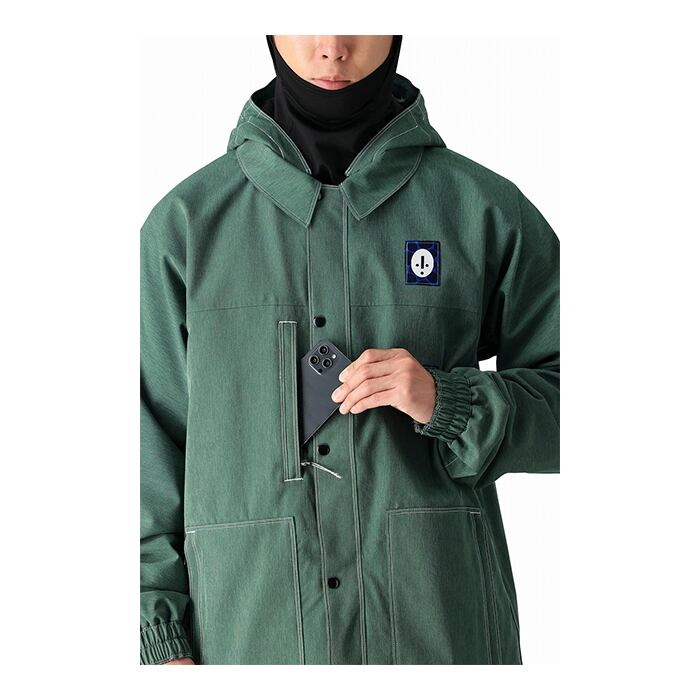 TECH : 2L ファブリック / シェルデザイン / Artwork by Forest Bailey / BEMISフルシームテープ / Air-Floベンチレーション / Helmet Compatible Hood / Phone Heater Pocket / 取り外し可能フード / スリーブパスポケット / PJコネクトシステム / パウダースカート