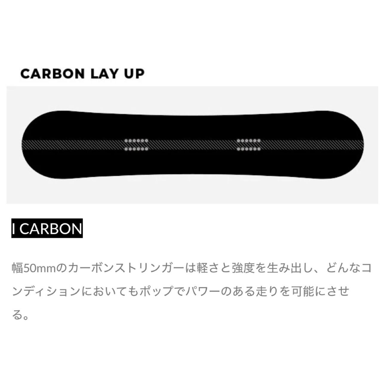 ■幅20mmのカーボンストリンガーは、最も柔らかいボードに採用されており、ライダーに優しいフレックスとプレス性を提供。