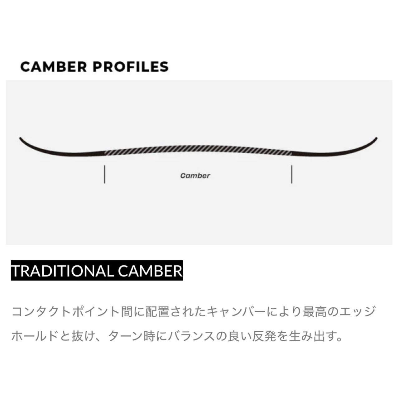 ■コンパクトポイント間に配置されたキャンバーにより最高のエッジホールドと抜け、ターン時にバランスの良い反発を生み出す。