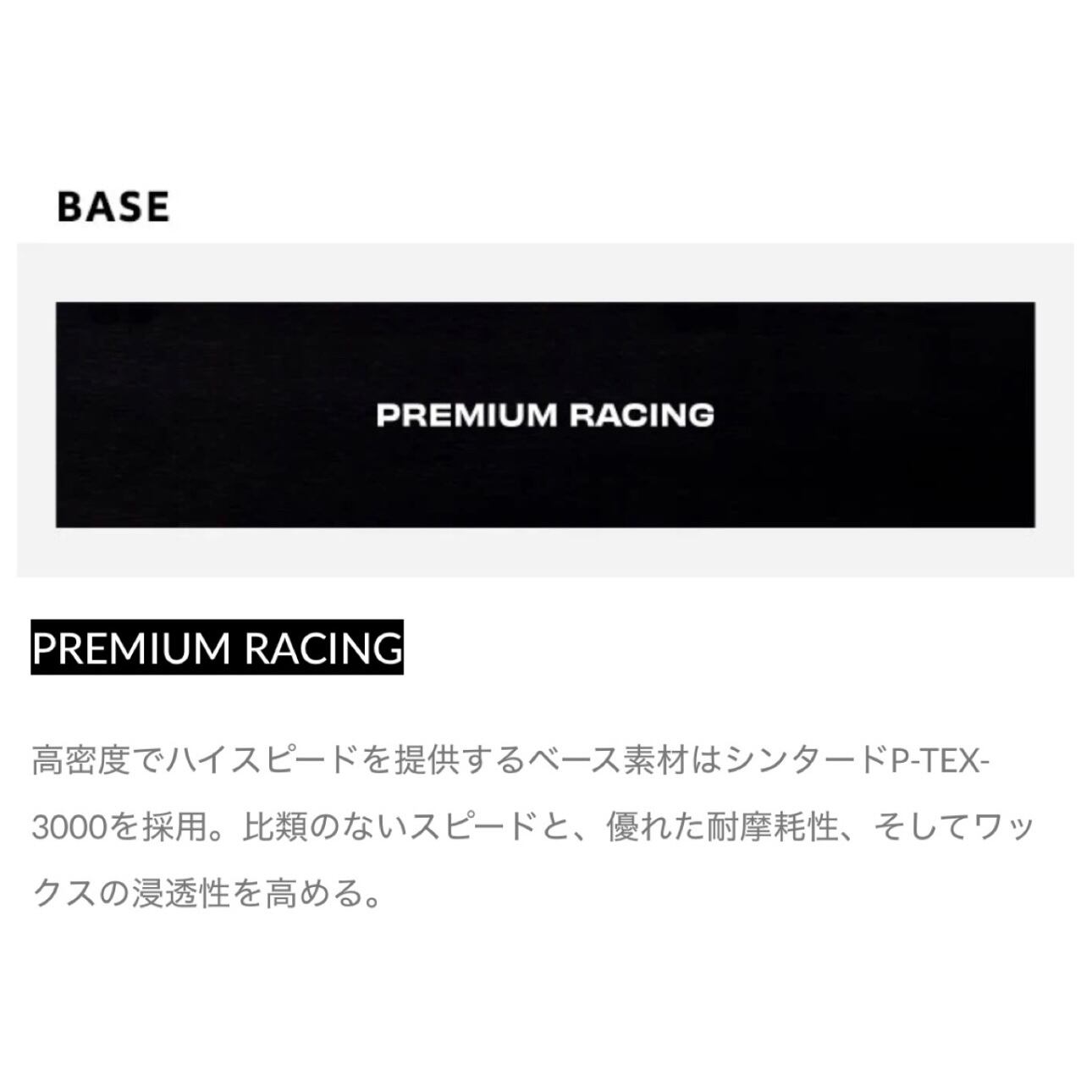 ■高密度でハイスピードを提供するベース素材はシンタードP-TEX-3000を採用。比類ないスピードと、優れた耐摩耗性、そしてワックスの浸透性を高める。