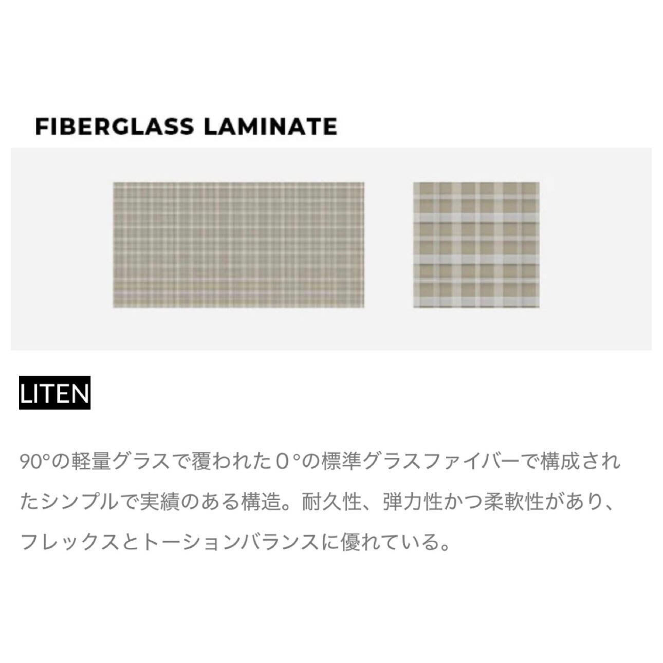 ■90°の軽量グラスで覆われた0°の標準グラスファイバーで構成されたシンプルで実績のある構造。耐久性。弾力性かつ柔軟性があり、フレックスとトーションバランスに優れている。