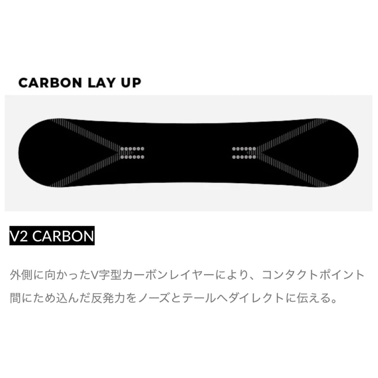 ■外側に向かったV字型カーボンレイヤーにより、コンタクトポイント間にため込んだ反発力をノーズとテールへダイレクトに伝える。