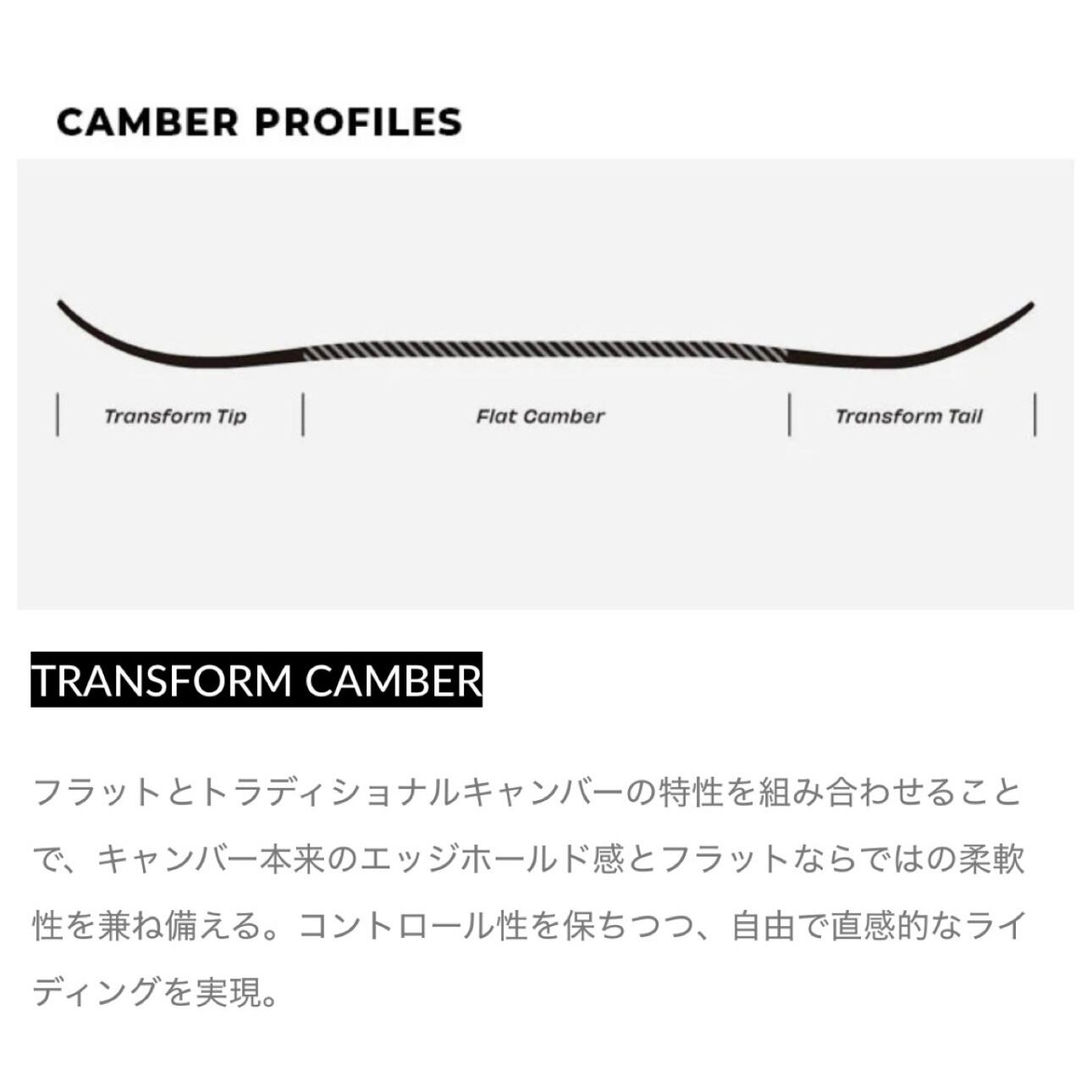 ■フラットとトラディショナルキャンバーの特性を組み合わせることで、キャンバー本来のエッジホールド感とフラットならではの柔軟性を兼ね備える。コントロール性を保ちつつ、自由で直感的なライディングを実現。