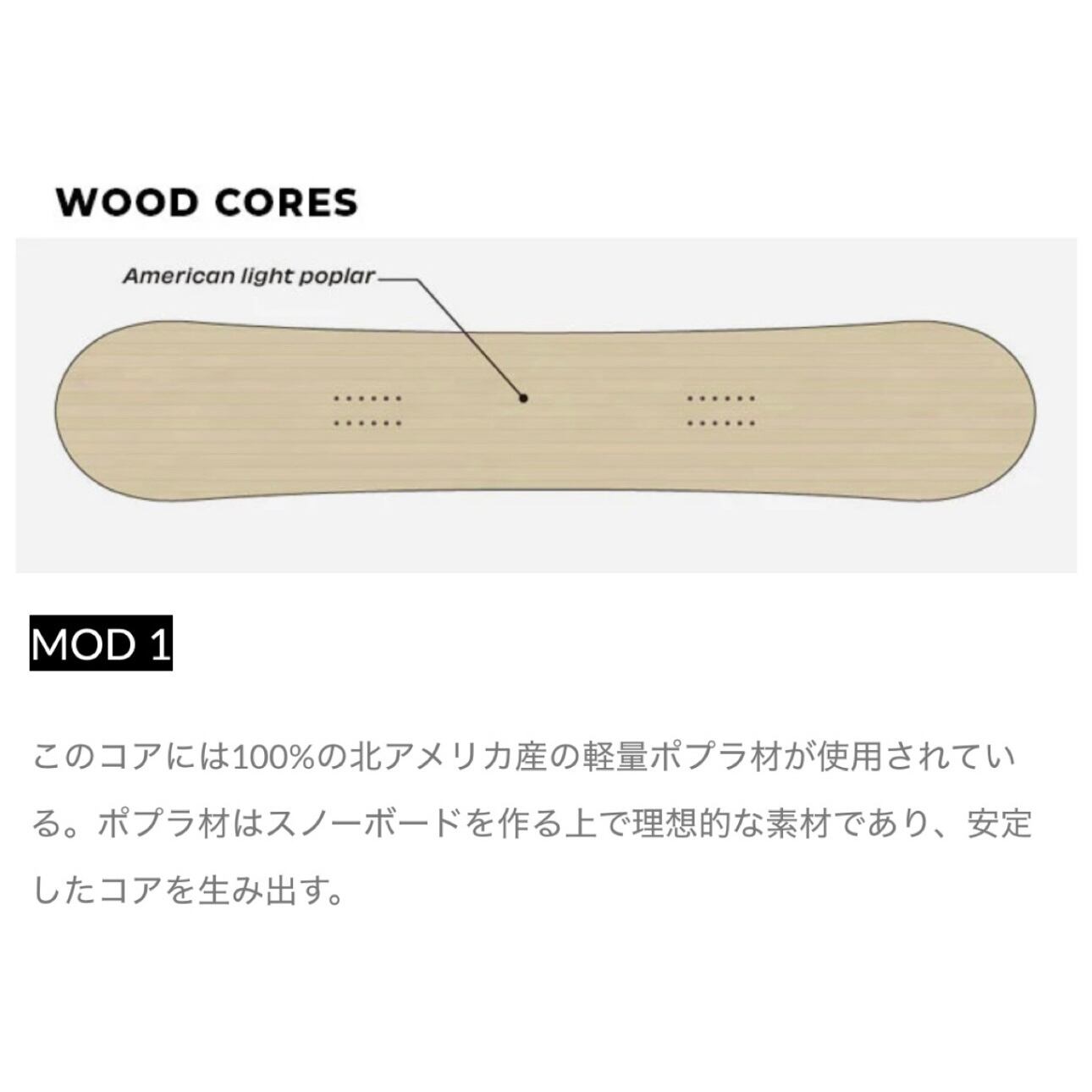 ■このコアには100%の北甘利嘉さんの軽量ポプラ材が使用されている。ポプラ材はスノーボードを作る上で理想的な素材であり、安定したコアを生み出す。