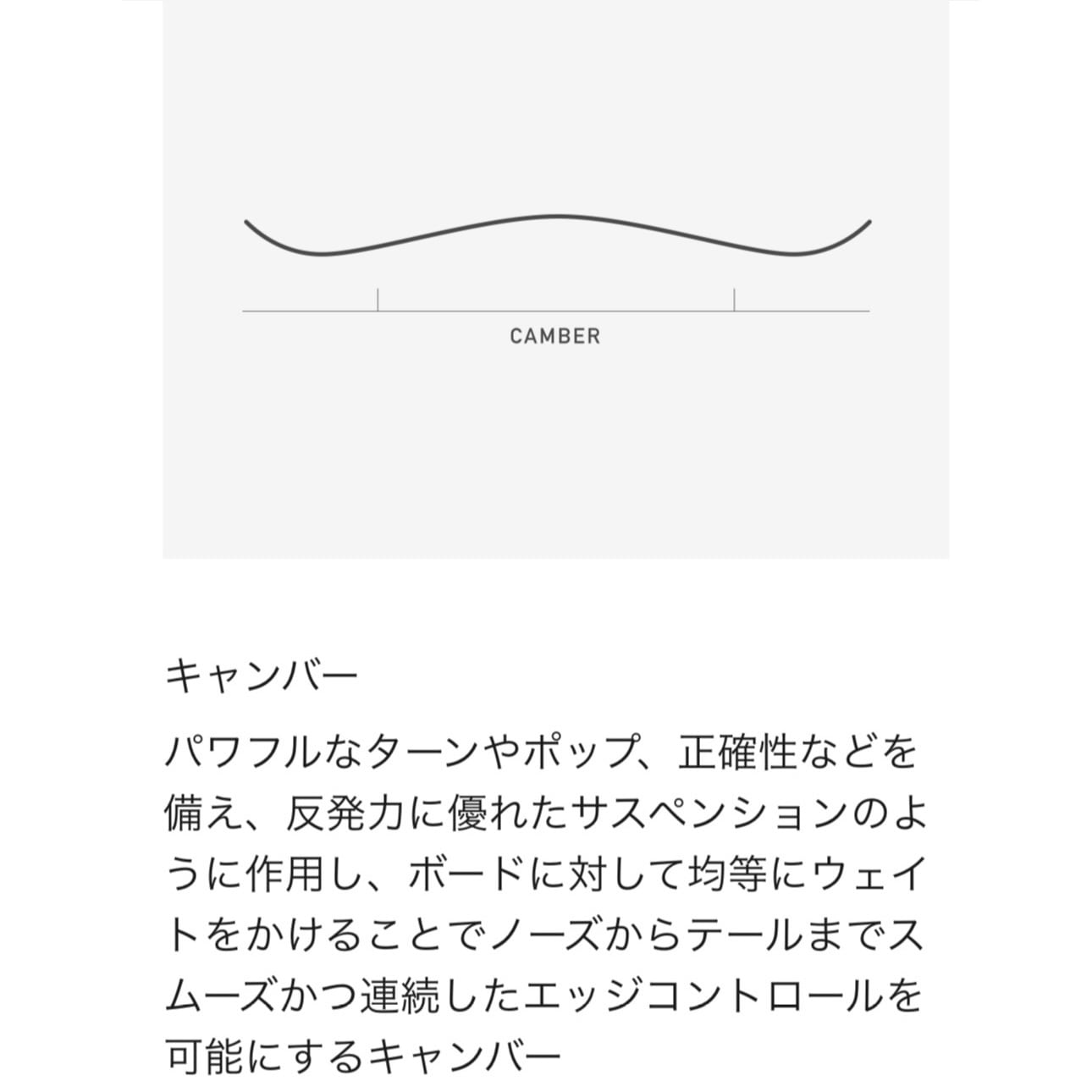 パワフルなターンやポップ、正確性などを備え、反発力に優れたサスペンションのように作用し、ボードに対して均等にウェイトをかけることでノーズからテールまでスムーズかつ連続したエッジコントロールを可能にするキャンバー