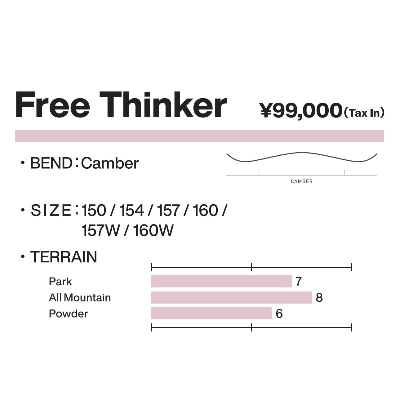 ◆ カテゴリー : Park 7/10、All-Mountain 8/10、Powder 6/10
