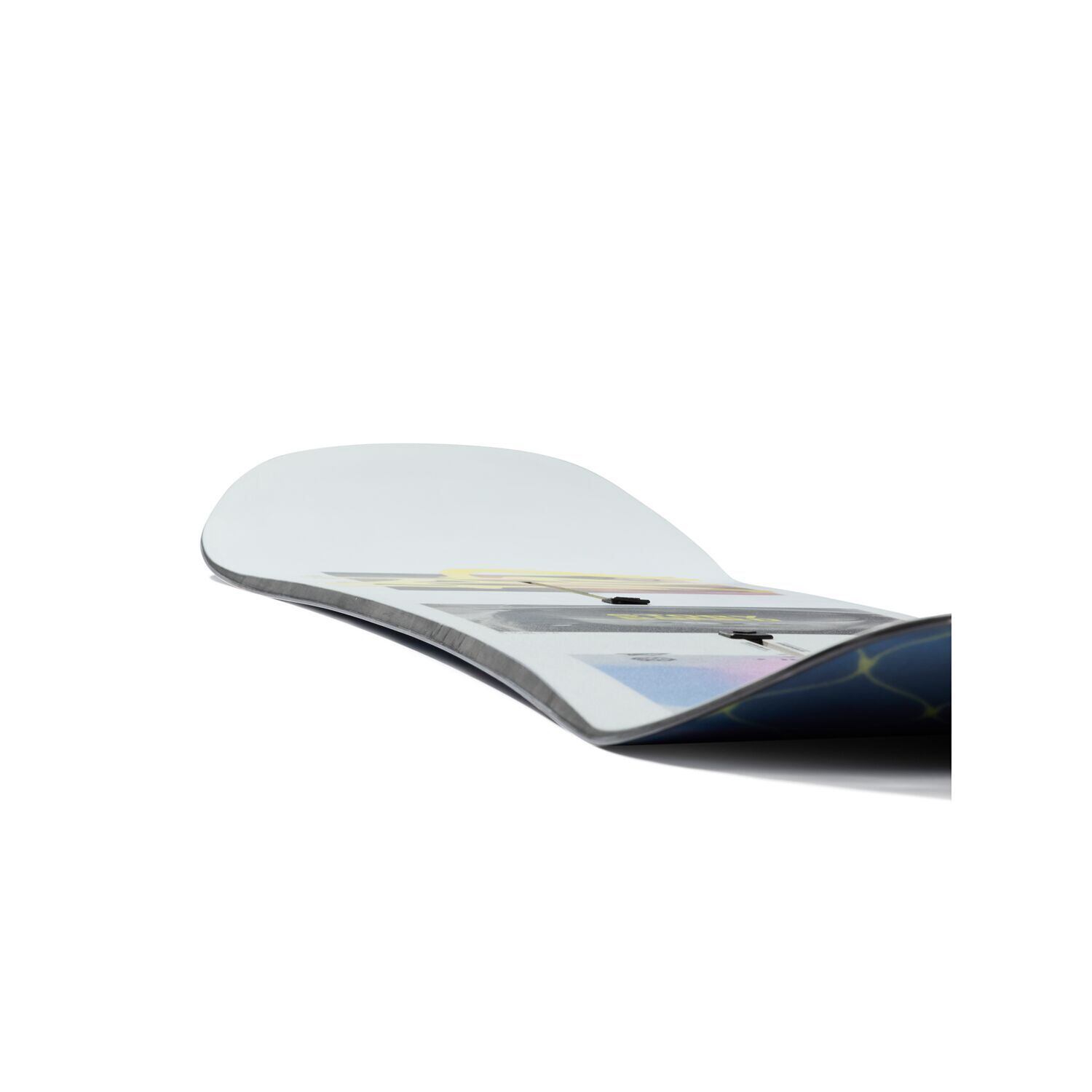 進行方向のロッカー形状がノーズを浮かせ、両足下のキャンバー形状が勢いと安定性を提供するので、様々なコンディションで鋭いターンを可能にするディレクショナルキャンバー